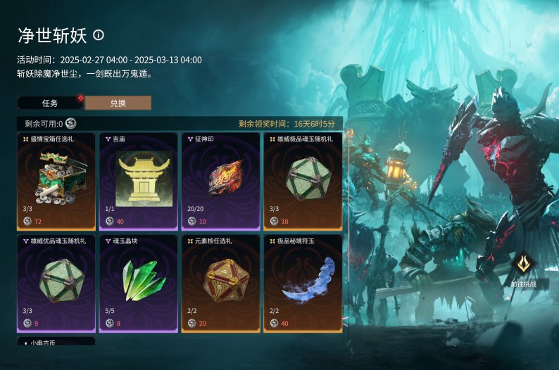 使用除魔徽可在兌換頁面領取盛情寶箱任選禮、頭像【吉廟】、雄威極品魂玉隨機禮等超多獎勵!