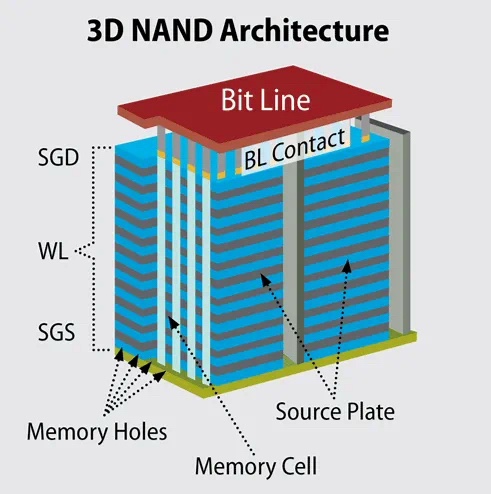 也就是一層 NAND 劃分到極限了,那就多整幾層,有更多的存儲單元。