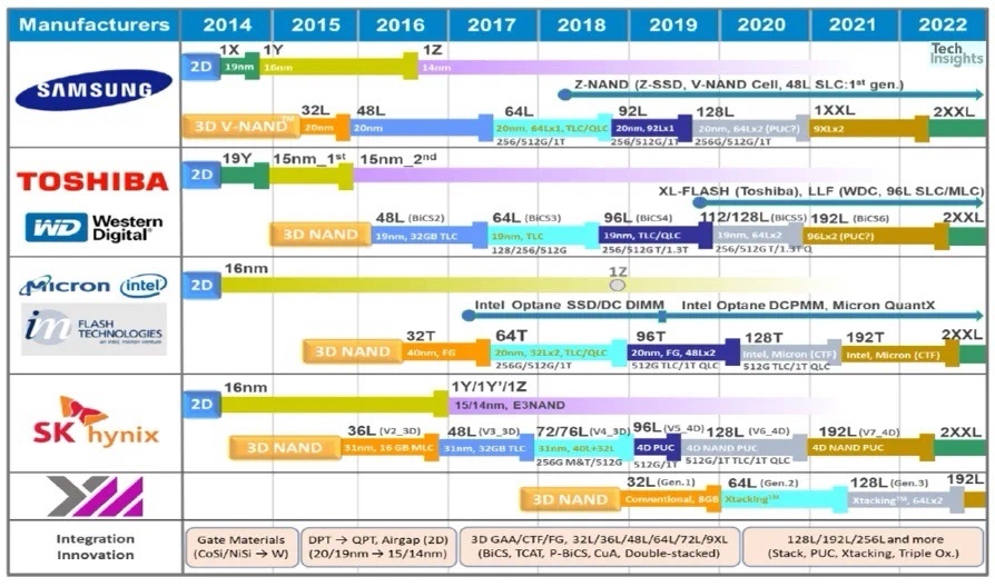 這項技術由三星 2013 年重視快速發展的,並且於 2019 年搞到了 128 層 3DNAND,而同時期的長江存儲,也纔剛剛投入 64 層。