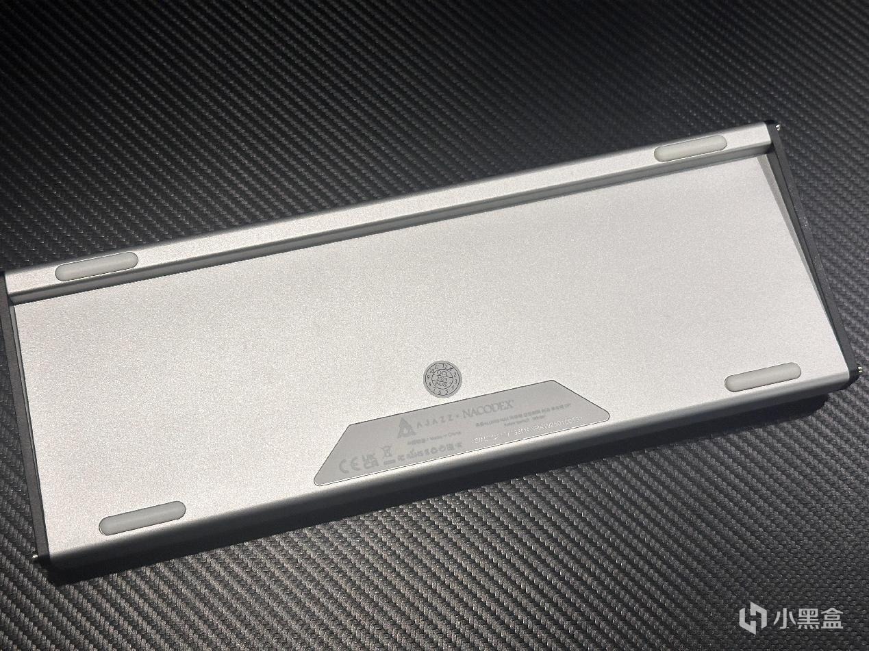 黑爵Alux68依旧是单模连接,左上角做了typec接口,背面没什么太多的设计,上部做了内缩处理,取消了两段式脚程,虽然无法调节高度,不过好在整体前高并不算高,使用起来也不太影响。
