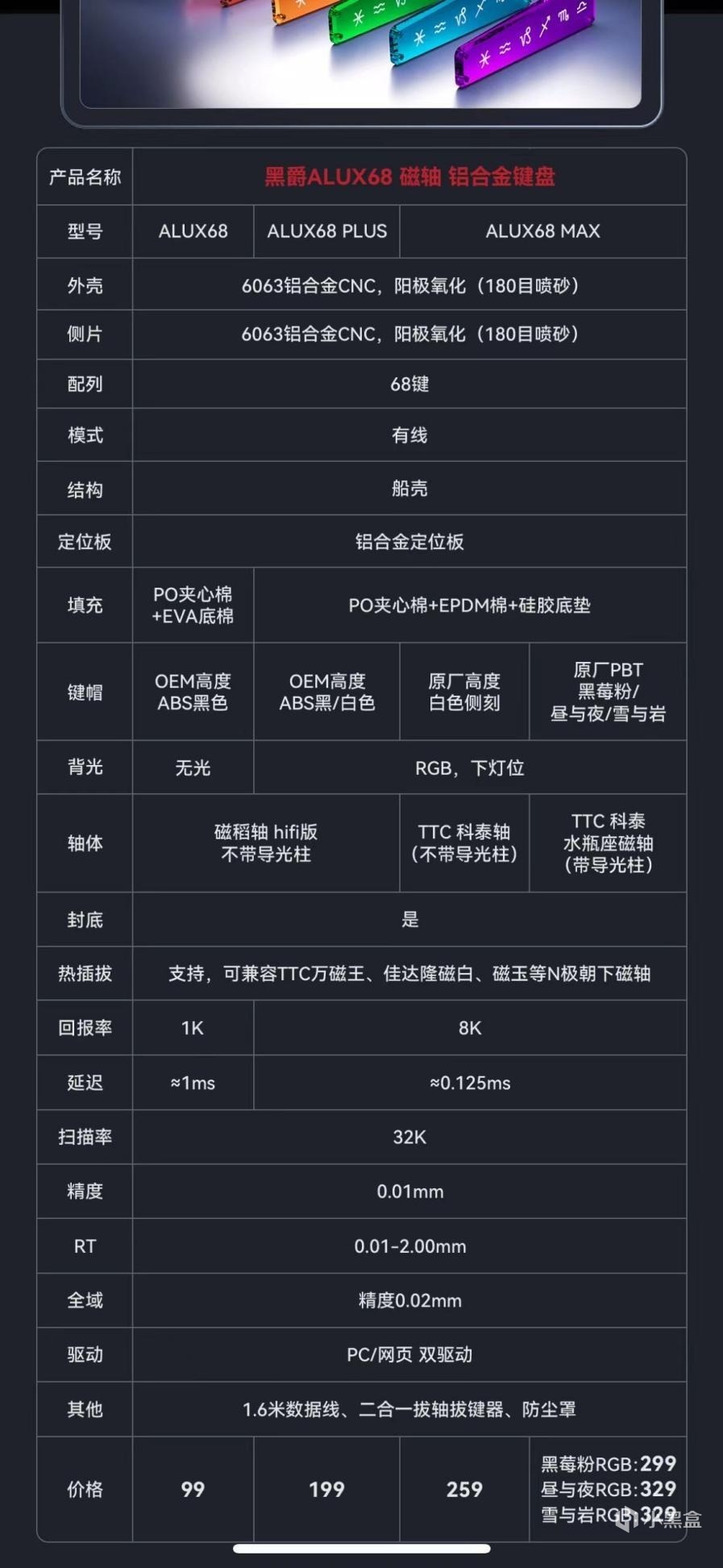 Hello~大家好,我是Ronin。原本以为2024年磁轴圈已经卷到头了,没想到黑爵在2025的开年就放出了一波王炸,也就是此前我发过一篇资讯介绍的黑爵Alux68。