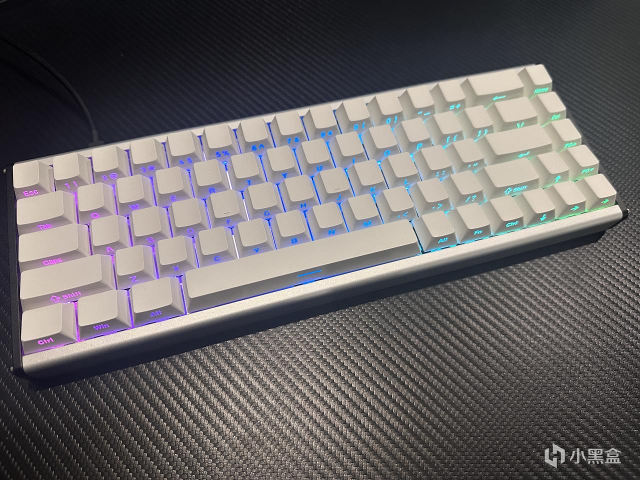 我手上的这把是259的白色侧刻版本,采用了68配列,也是目前磁轴比较常见的配列了,砍掉了F区以及大部分功能按键,而相较于60配列保留了方向键,占用空间更小,使用起来也更加方便。