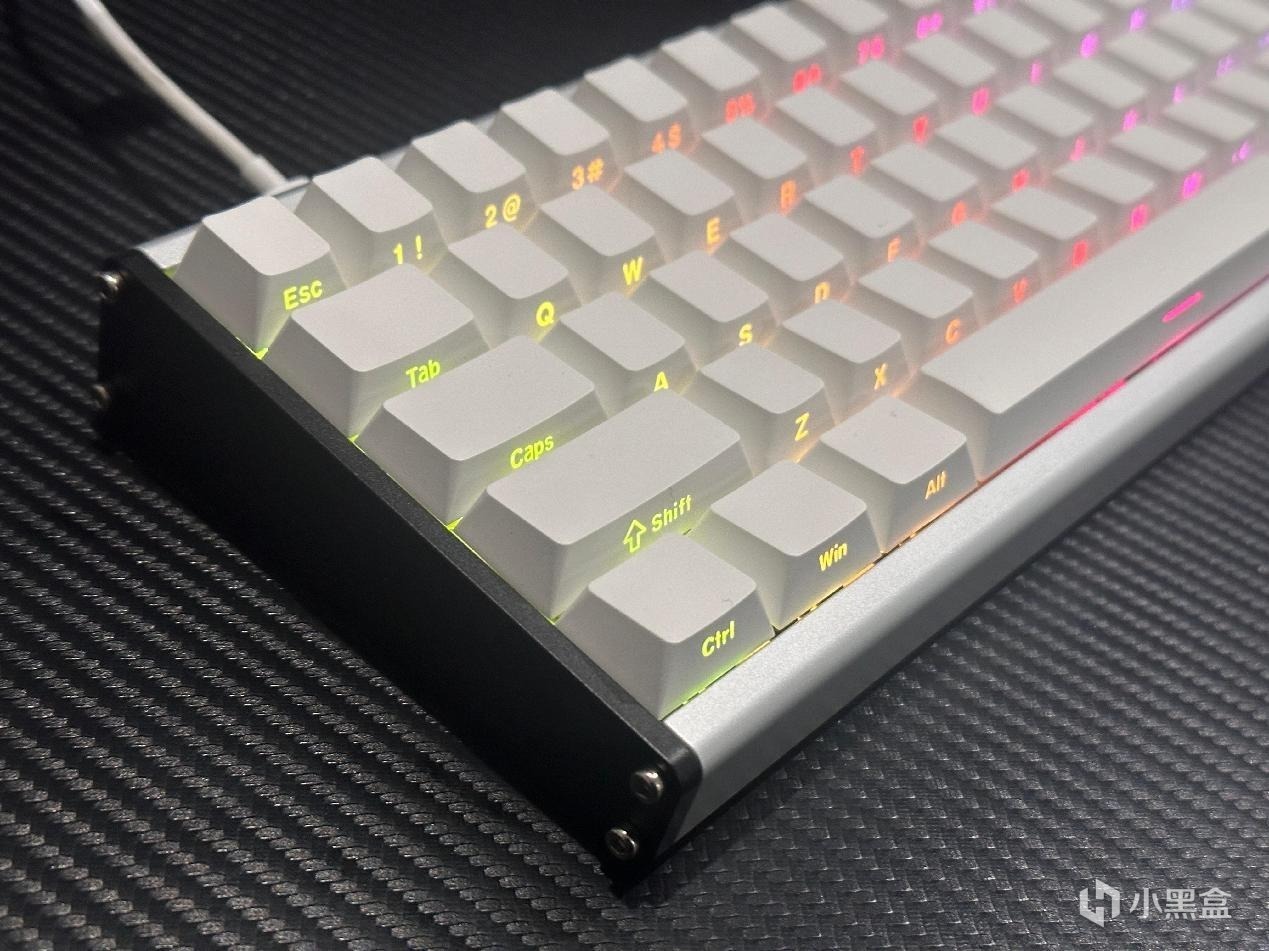 键帽方面,采用的是PBT材质的白色侧刻键帽,原厂高度,字符透光,简约大气,PBT材质更加耐磨,不易打油,手感舒适。