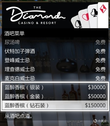 吧檯中售賣的“藍醉香檳”有3萬、5萬、15萬的,選最便宜3萬的就行