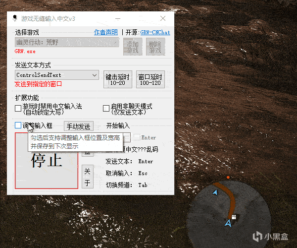 4、支持調整輸入框位置及大小,並根據遊戲窗口分辨率分別保存。