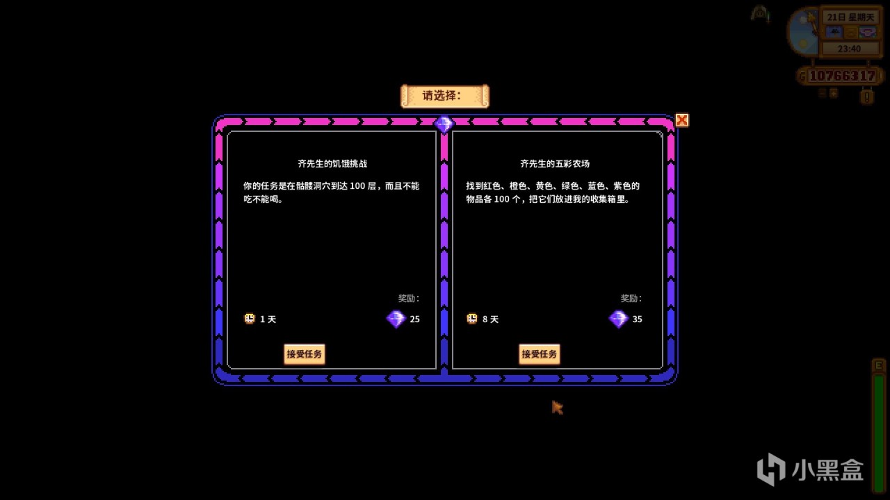 與鵜鶘鎮的特別任務板一樣,核桃房裏也有接取任務的面板。每週都會有兩個任務選擇接取,完成齊先生髮布的任務後可獲得齊鑽。
