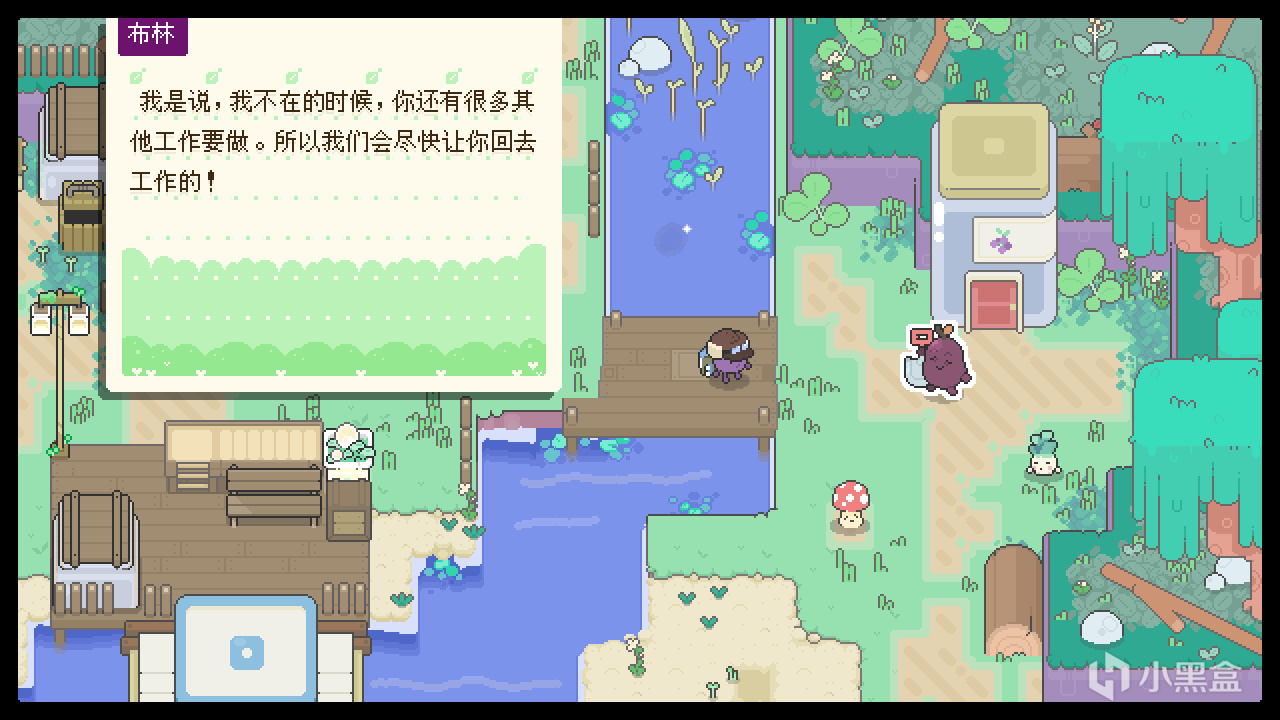 這款遊戲在我看來,確實非常有趣。遊戲的故事線相當簡潔,講述了主角——一顆小葡萄,在春夏秋冬四個小鎮中,擊敗各路Boss,拯救居民和家人。標準的救世主風格,之前我玩的銀河惡魔城(island)也是這樣的,包括各種各樣的遊戲的主線都是難出其左右。關鍵是在完成各種日常任務時,僅憑着寥寥幾個對話框,對於這個NPC的人物性格都會有深刻的印象。