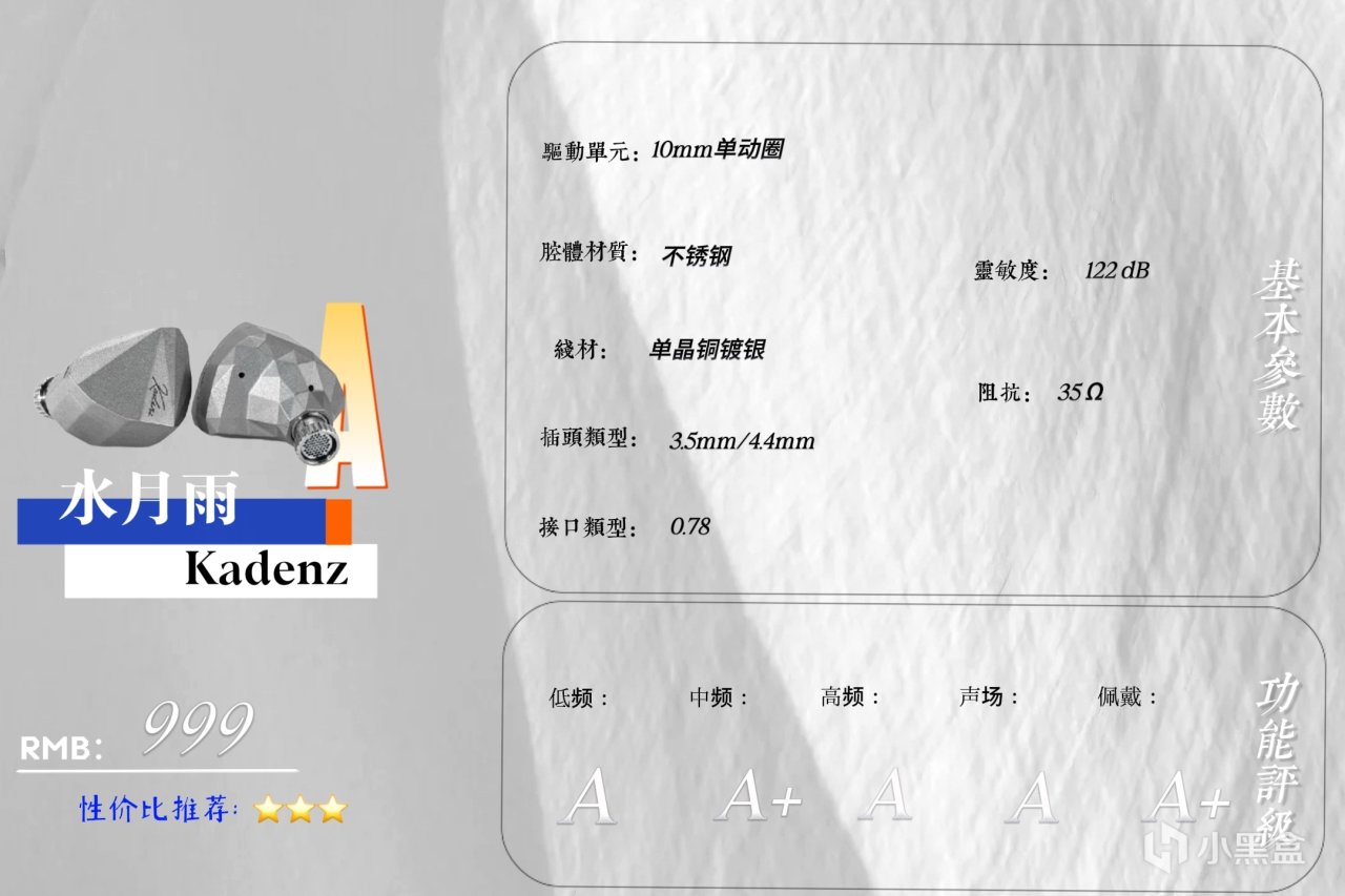 人聲不算貼耳但不散,音色很細膩,細節在線,主觀聽感女聲比男聲好聽;低頻量感和下潛都在線,回彈表現良好,高頻延展性稍一般,聲場較廣,結像清晰,解析力和分離度表現優秀,較爲耐聽的雜食性耳機。