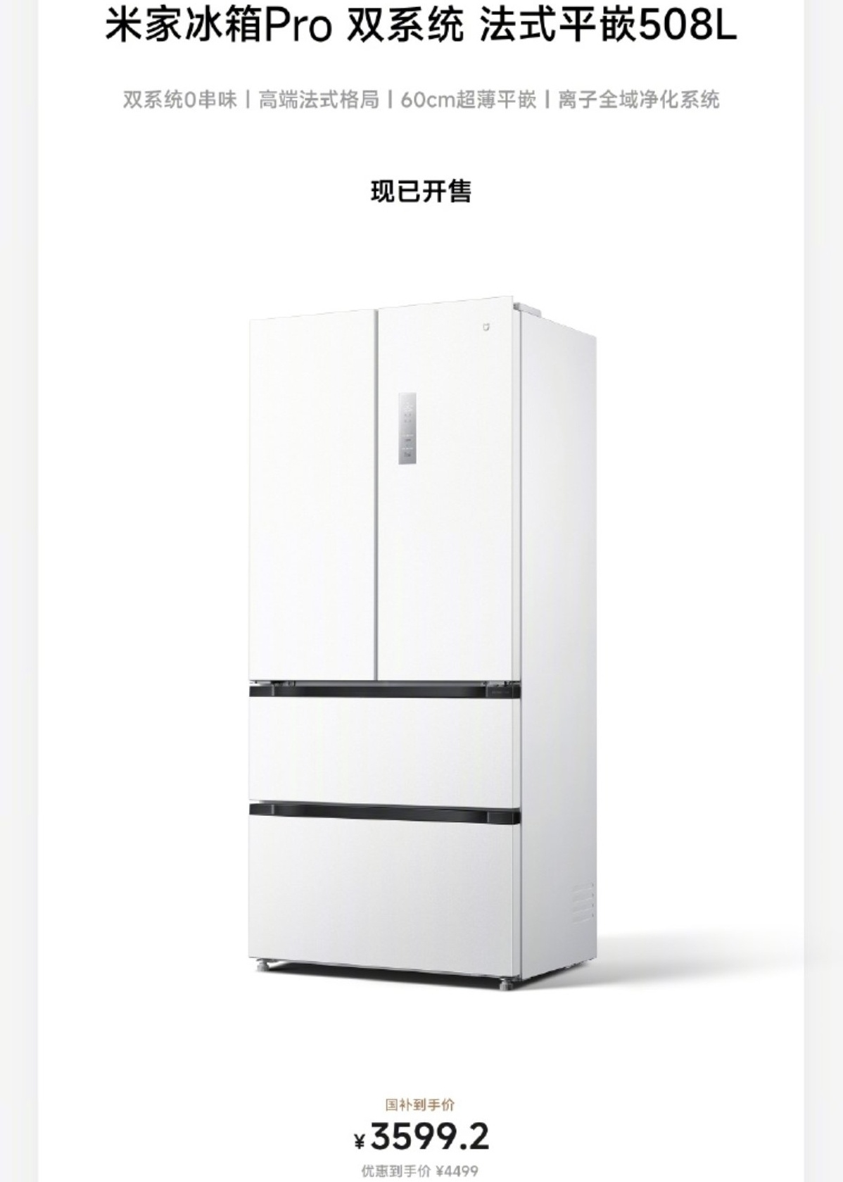 7、米家冰箱Pro 國補後3599.2