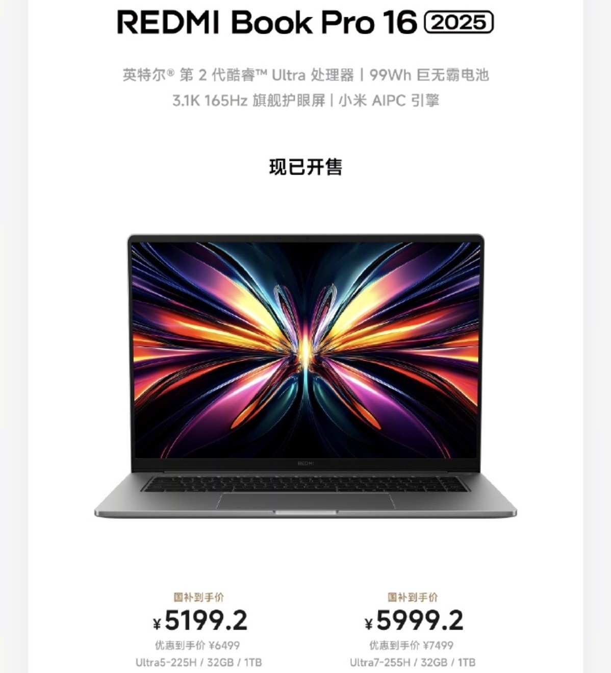 4、紅米bookpro16 2025 國補後5199.2起