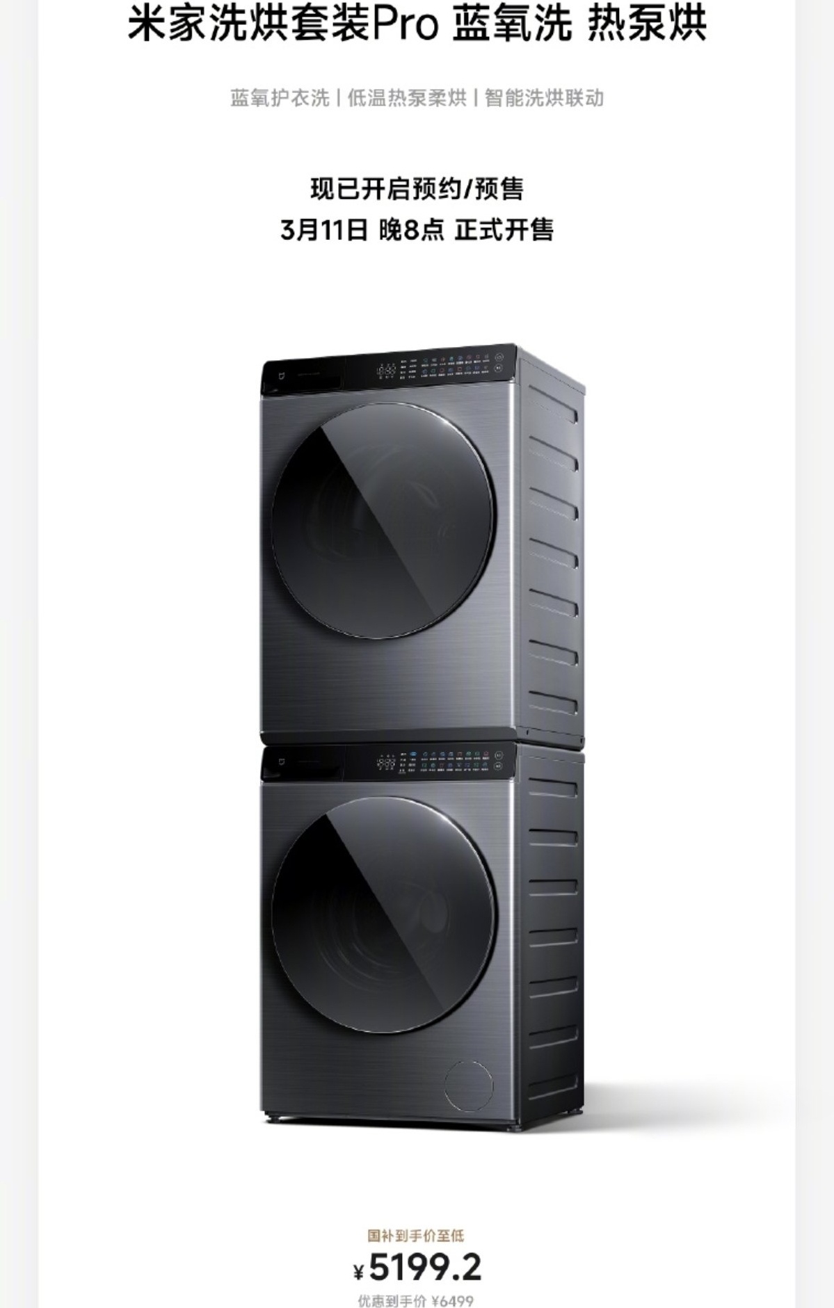 8、米家洗烘套裝Pro 國補後5199.2
