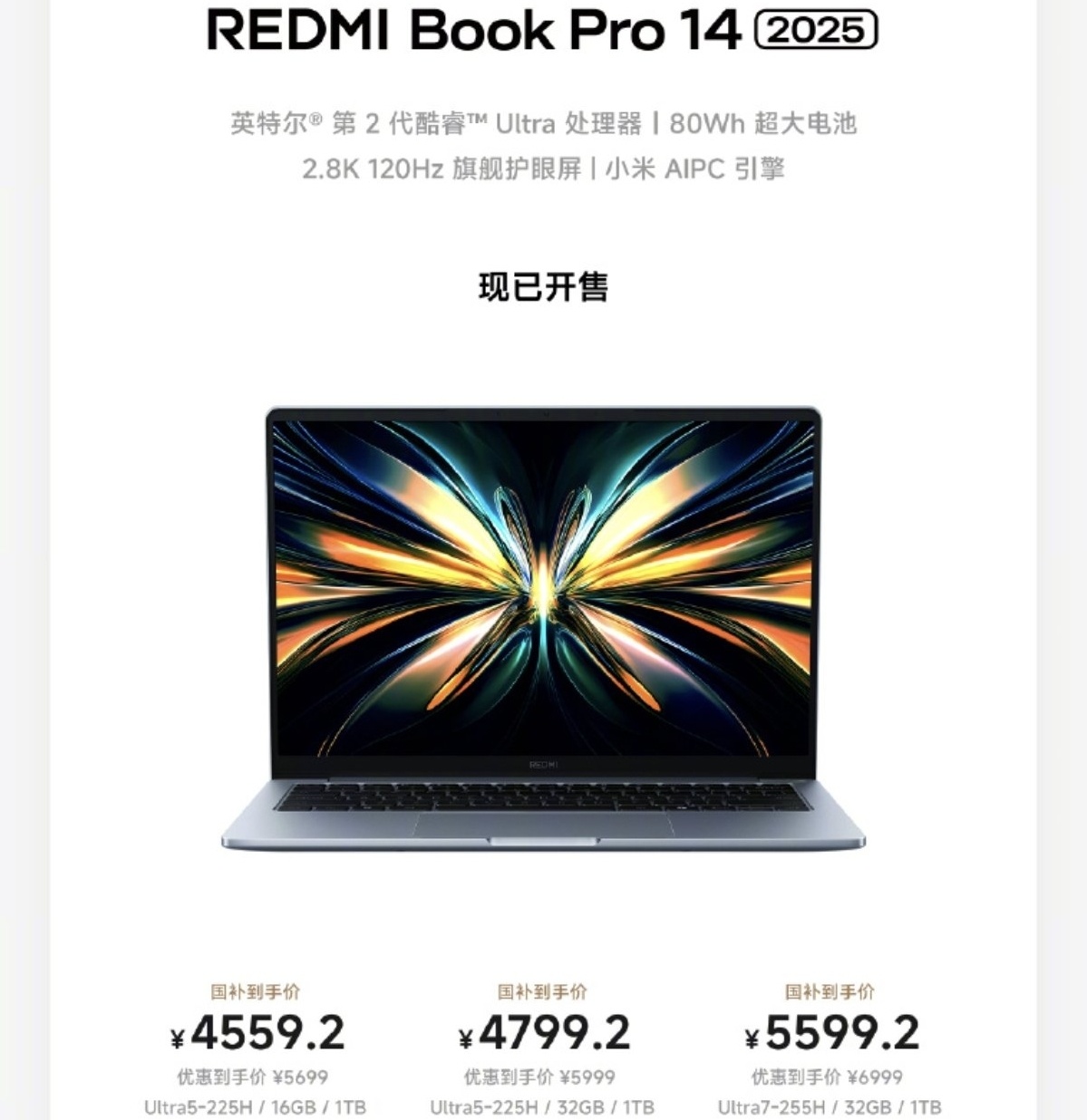 5、紅米bookpro14 2025 國補後4559.2起