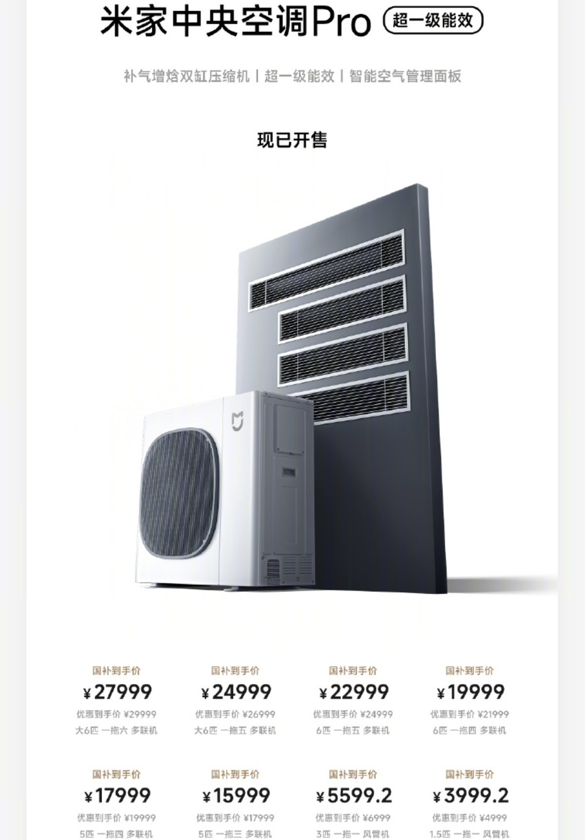 6、米家中央空調Pro 國補後3999.2起
