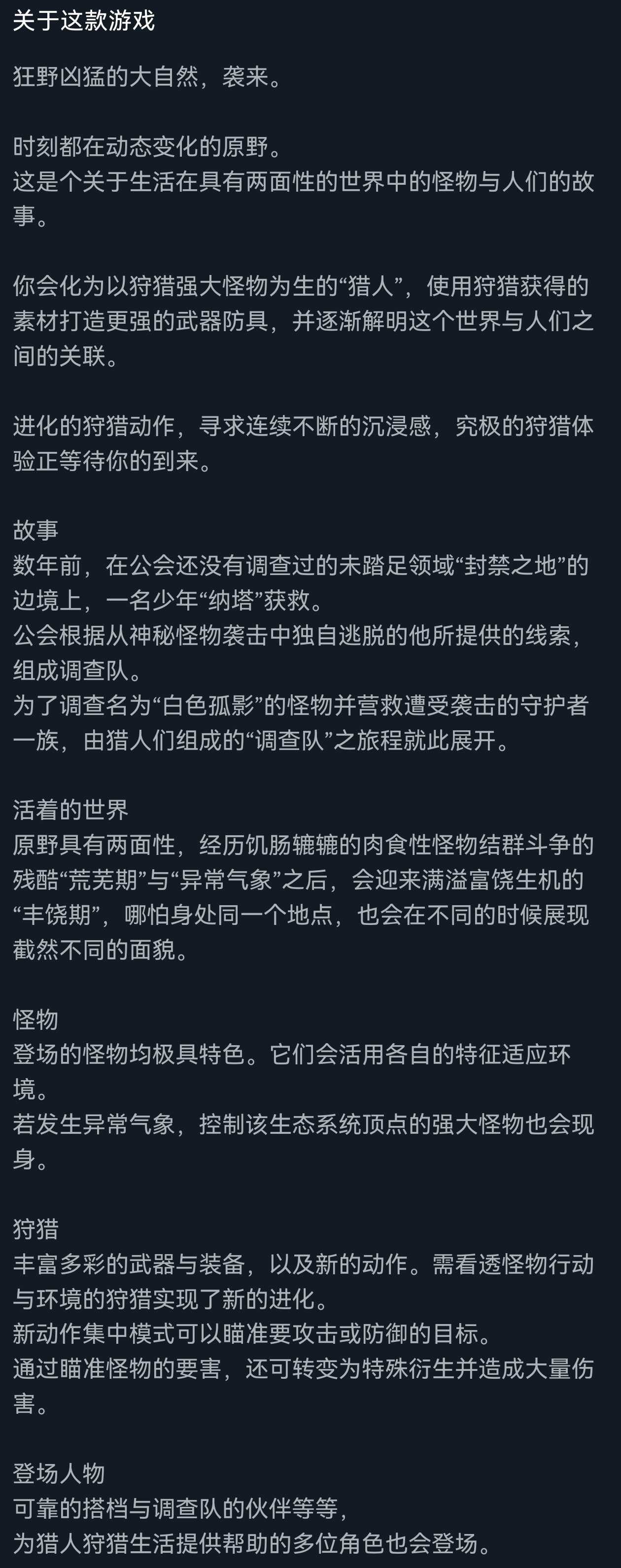 大家好,今天卡普空怪物獵人系列的最新作《怪物獵人:荒野》就正式發售了,遊戲背景發生在場地更加廣闊的原野,遊戲已經經歷一測與二測,而卡普空將在遊戲上線的同時推出遊戲的首日補丁,尚且不知道補丁的內容,但是鑑於遊戲一測與二測存在的優化問題,應該主要是用來解決優化的,而且遊戲已經可以預載了,於中午一點解鎖。