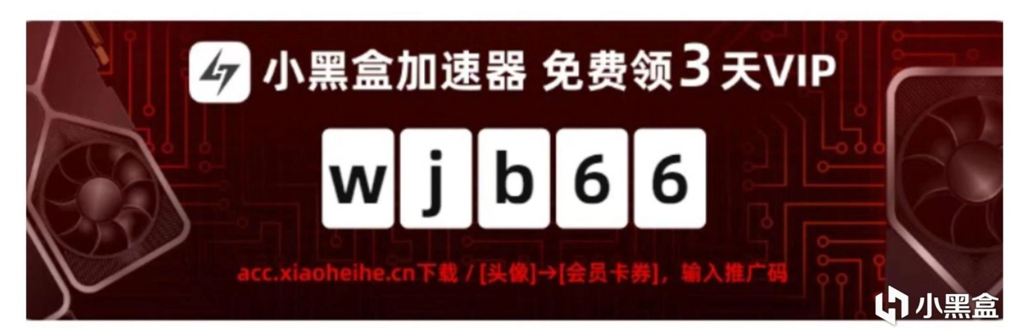 在小黑盒pc端加速器输入kenan66和wjb66,即可每月分别白嫖三天会员时长!