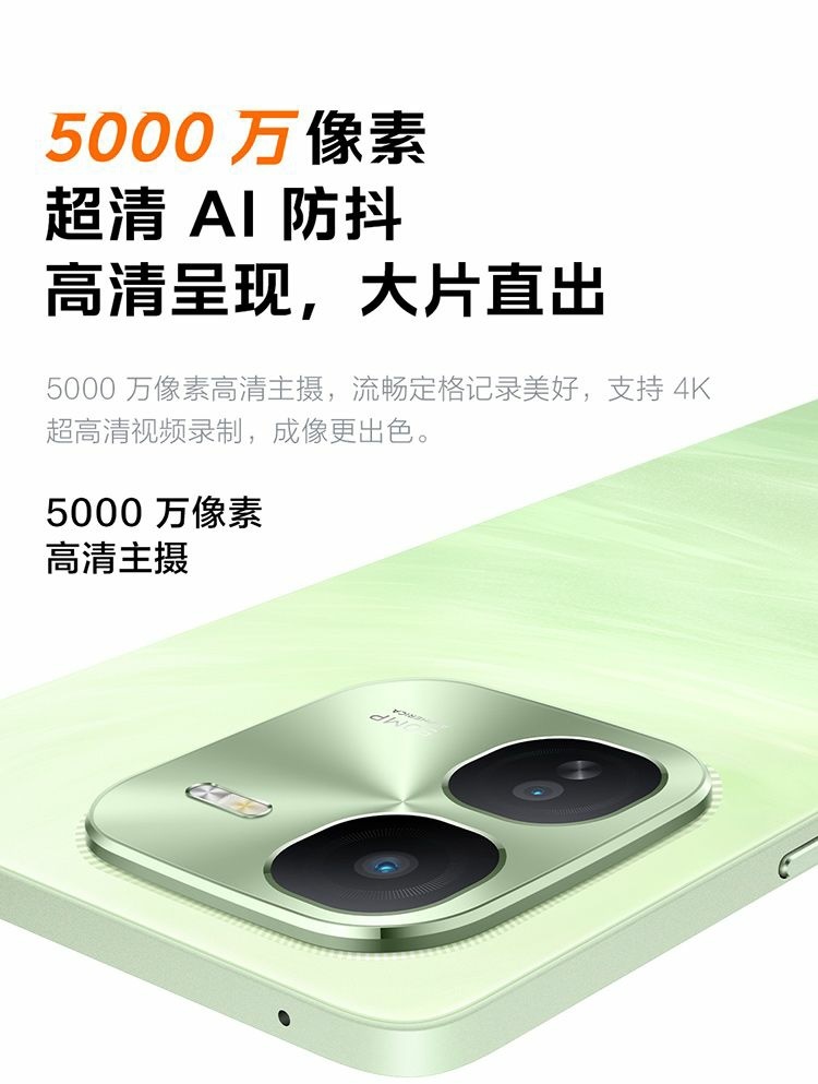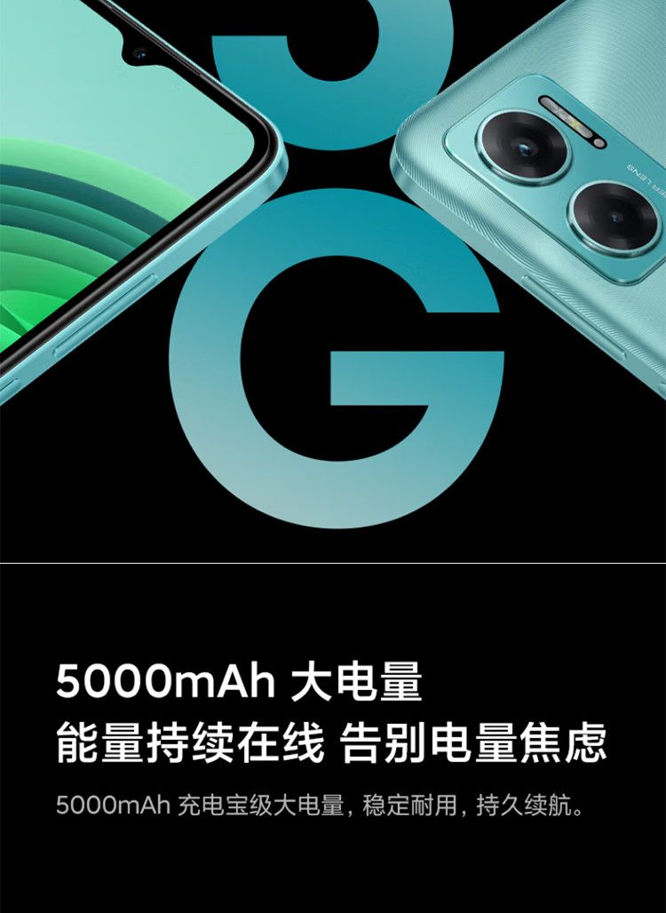 優點:5,000萬像素鏡頭、5g、5000毫安時電池、18瓦充電速度、90赫茲刷新率(處理器爲天璣700,相較於天璣6100+性能稍弱一些)