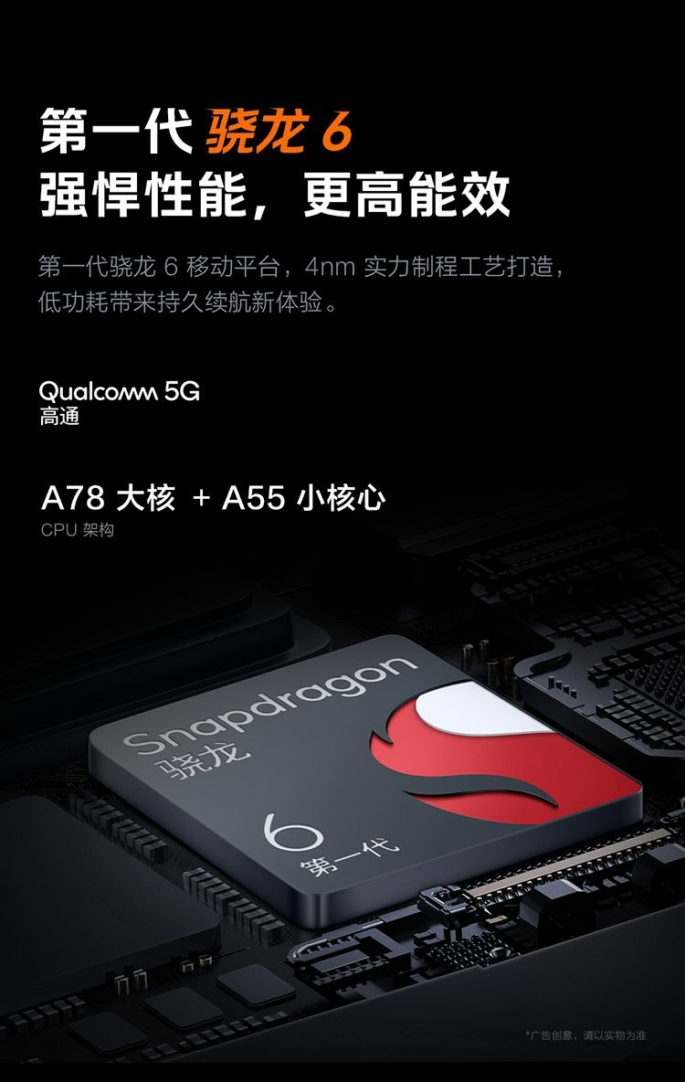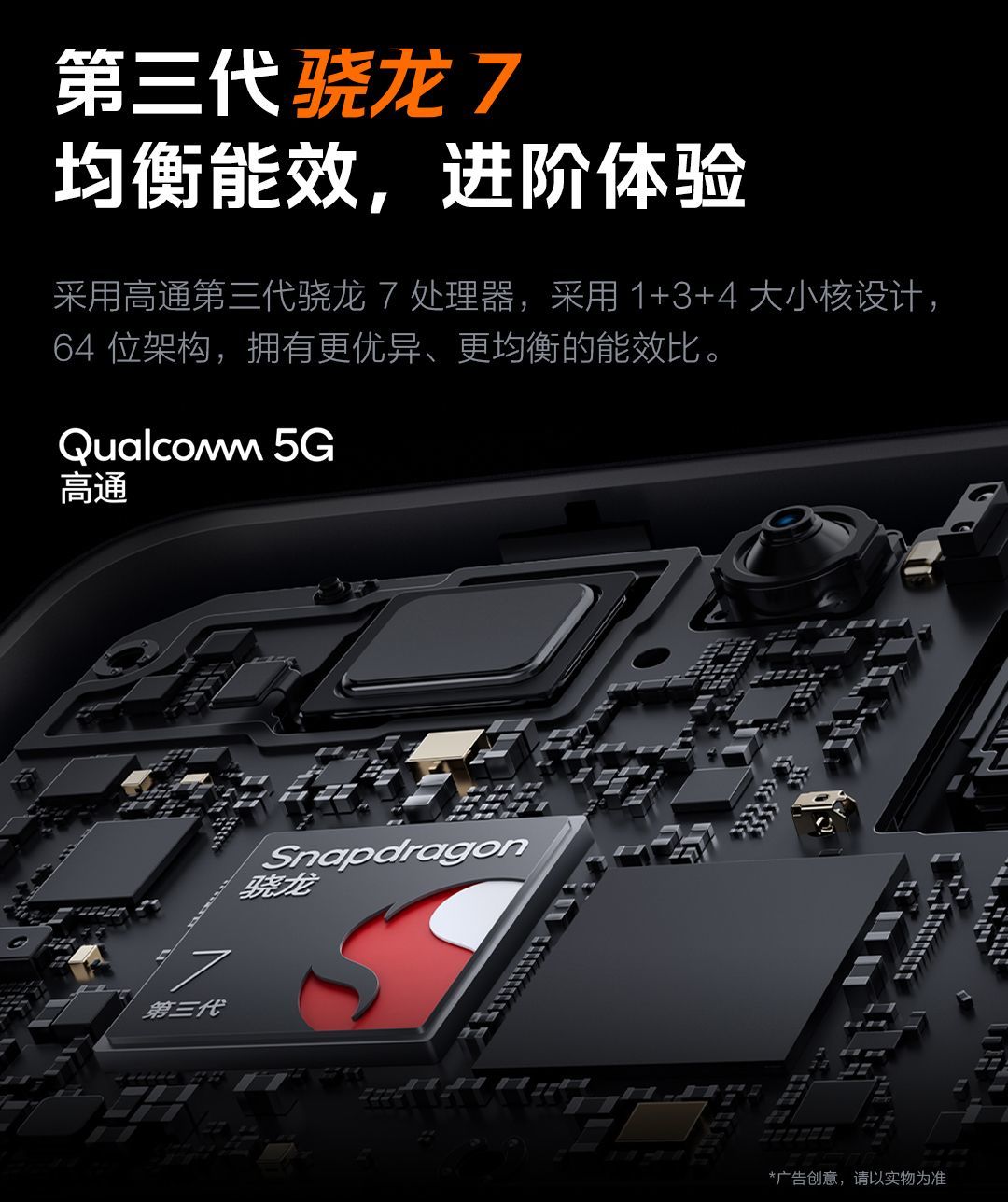 優點:5500毫安時電池,5,000萬後置攝像頭,80瓦閃充、120赫茲(性能交叉處理器爲驍龍695)