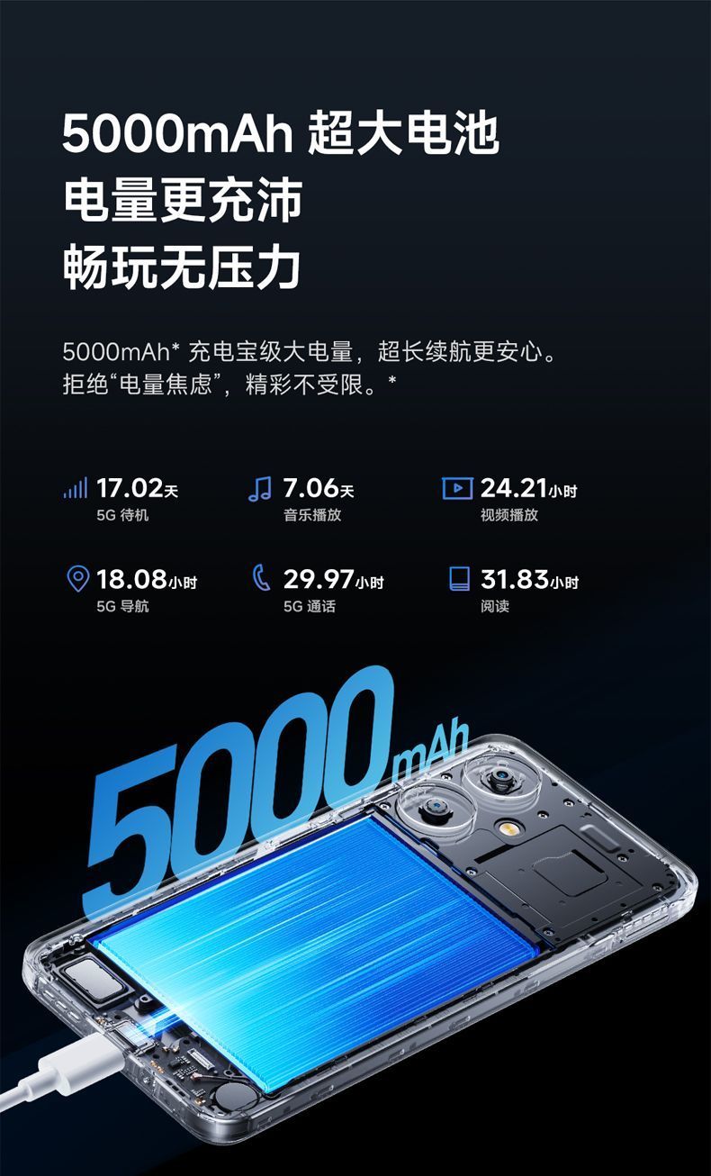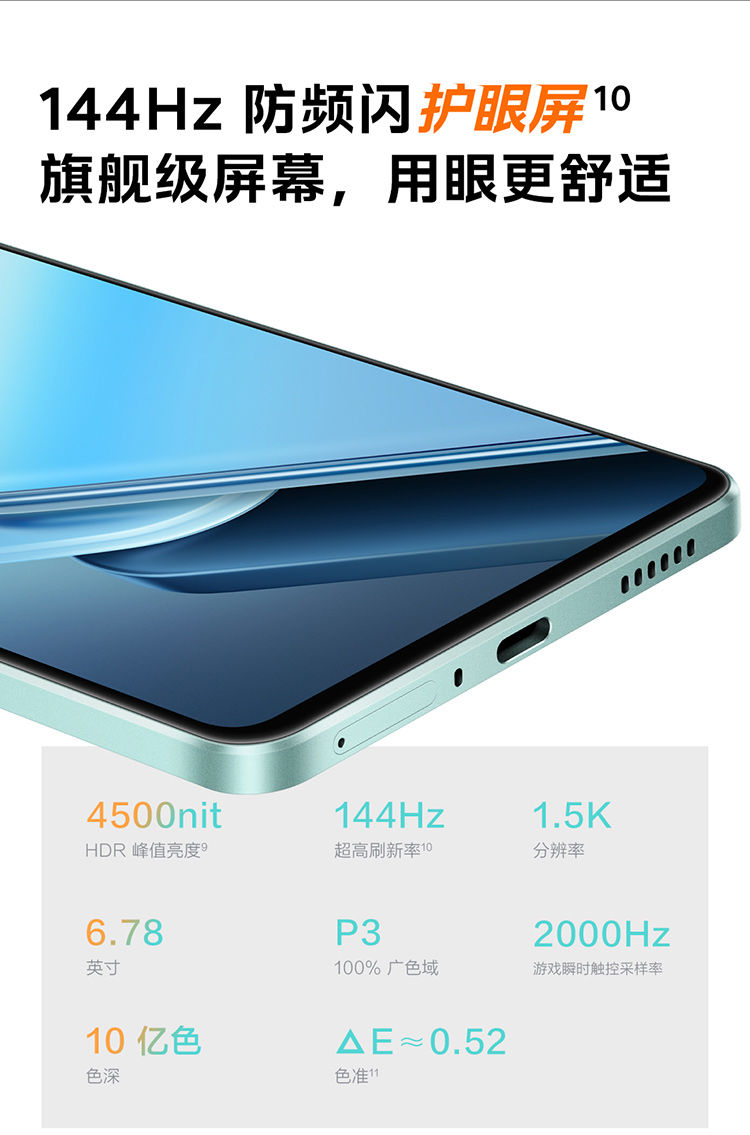 優點:5110毫安大電池、 Oled屏幕、後置攝像頭5,000萬像素,120赫茲高刷屏、護眼丶ip64防塵防水(處理器天璣7025-Ultra)