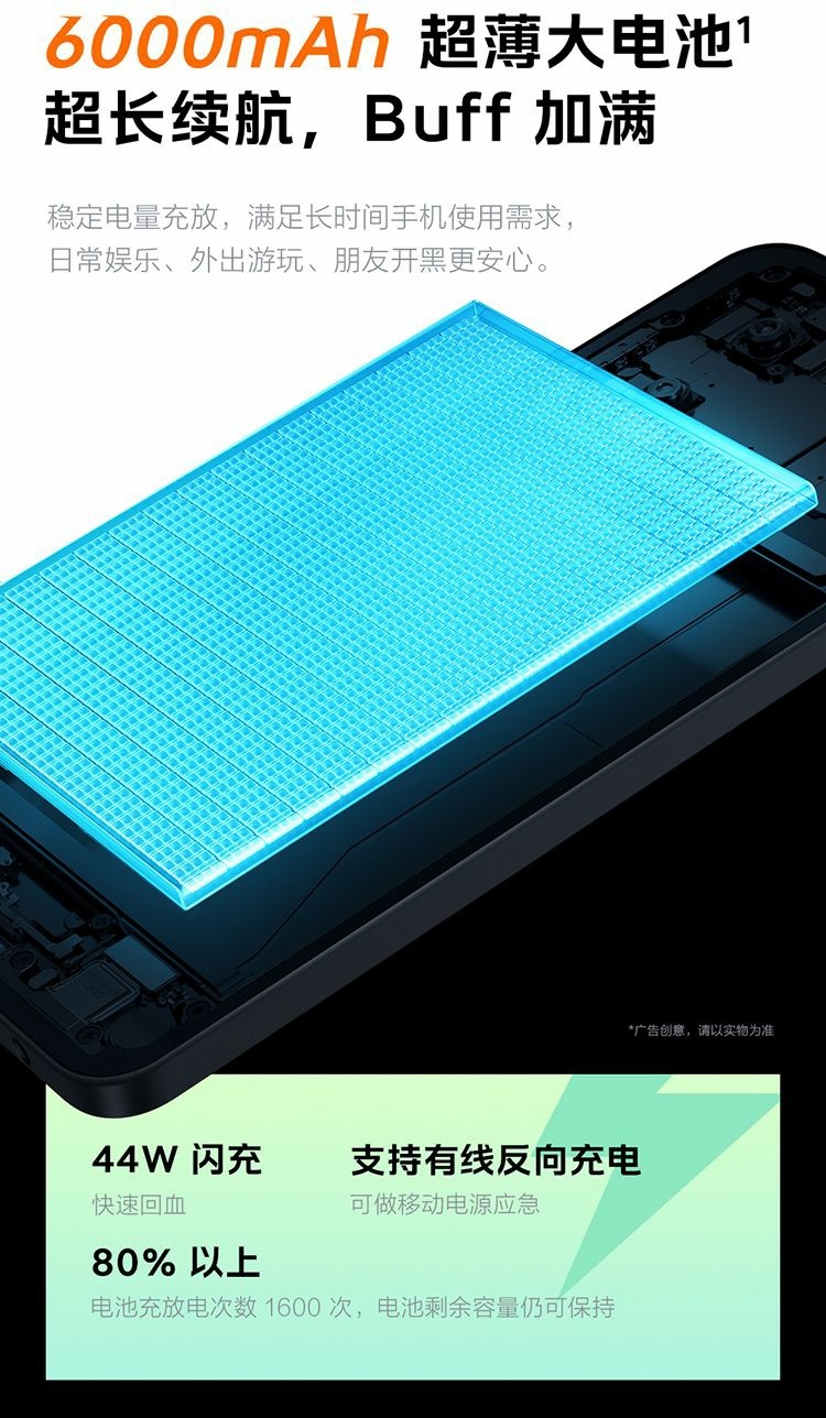 優點:6000毫安時大電池、80瓦閃充、1.5k屏、144赫茲高刷屏、5,000萬像素後置攝像頭、屏幕指紋(處理器高通驍龍7G3,不是7+G3)