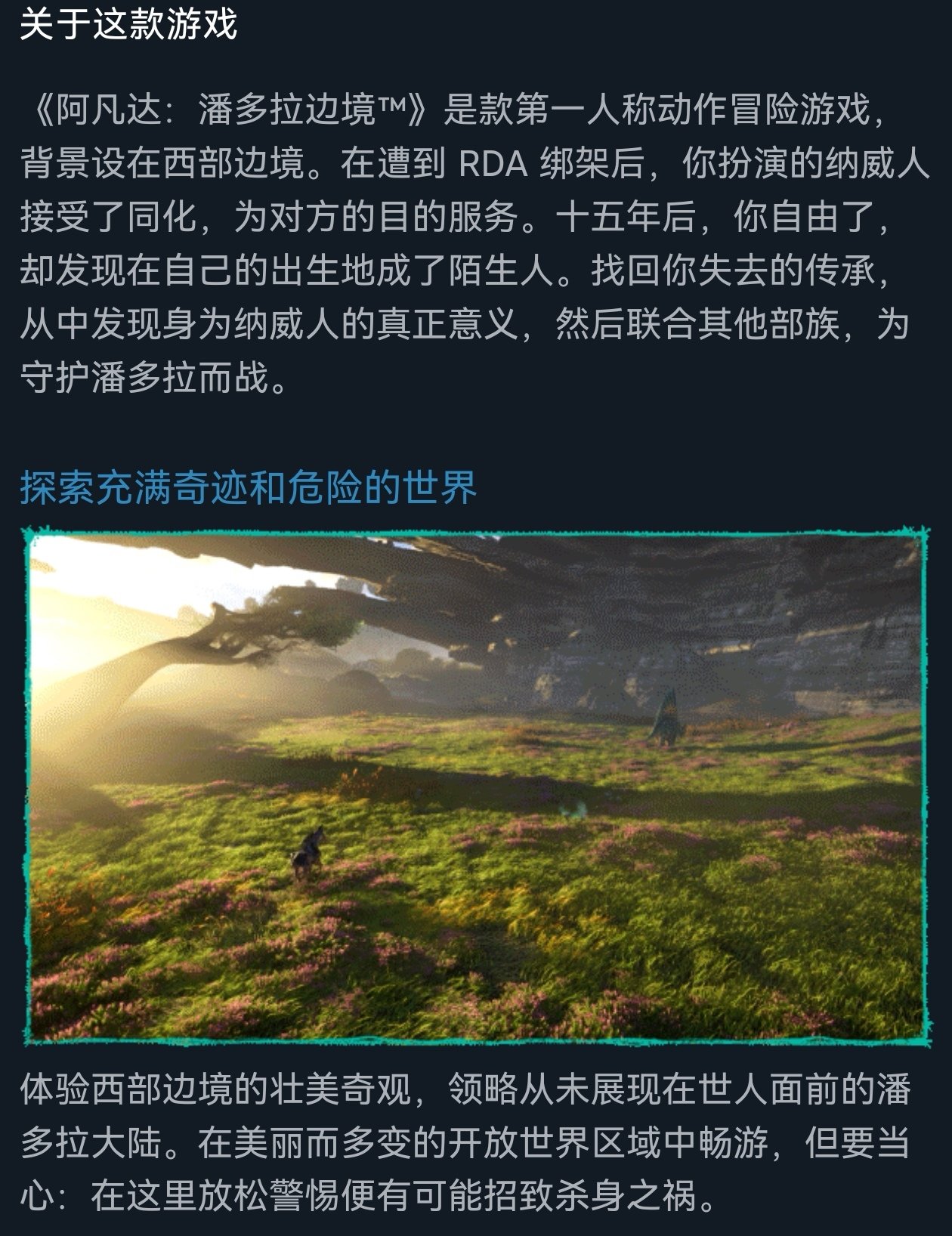 大家好,今天知名遊戲廠商爲旗下的遊戲開啓了折扣,其中《阿凡達:潘多拉邊境》更是迎來了新史低114.84元,只能說不愧是育碧,在打折這方面永遠都不會讓我們失望,《阿凡達:潘多拉邊境》改編自《阿凡達》電影,是一款第一人稱的動作冒險遊戲,遊戲爲開放世界。