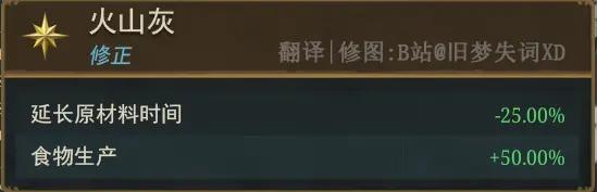 不仅有破坏资源采集作业,摧毁建筑物,人口死亡等危害,并且还会大幅降低繁荣度。但由于火山土的肥力,粮食产量也会略有提高。