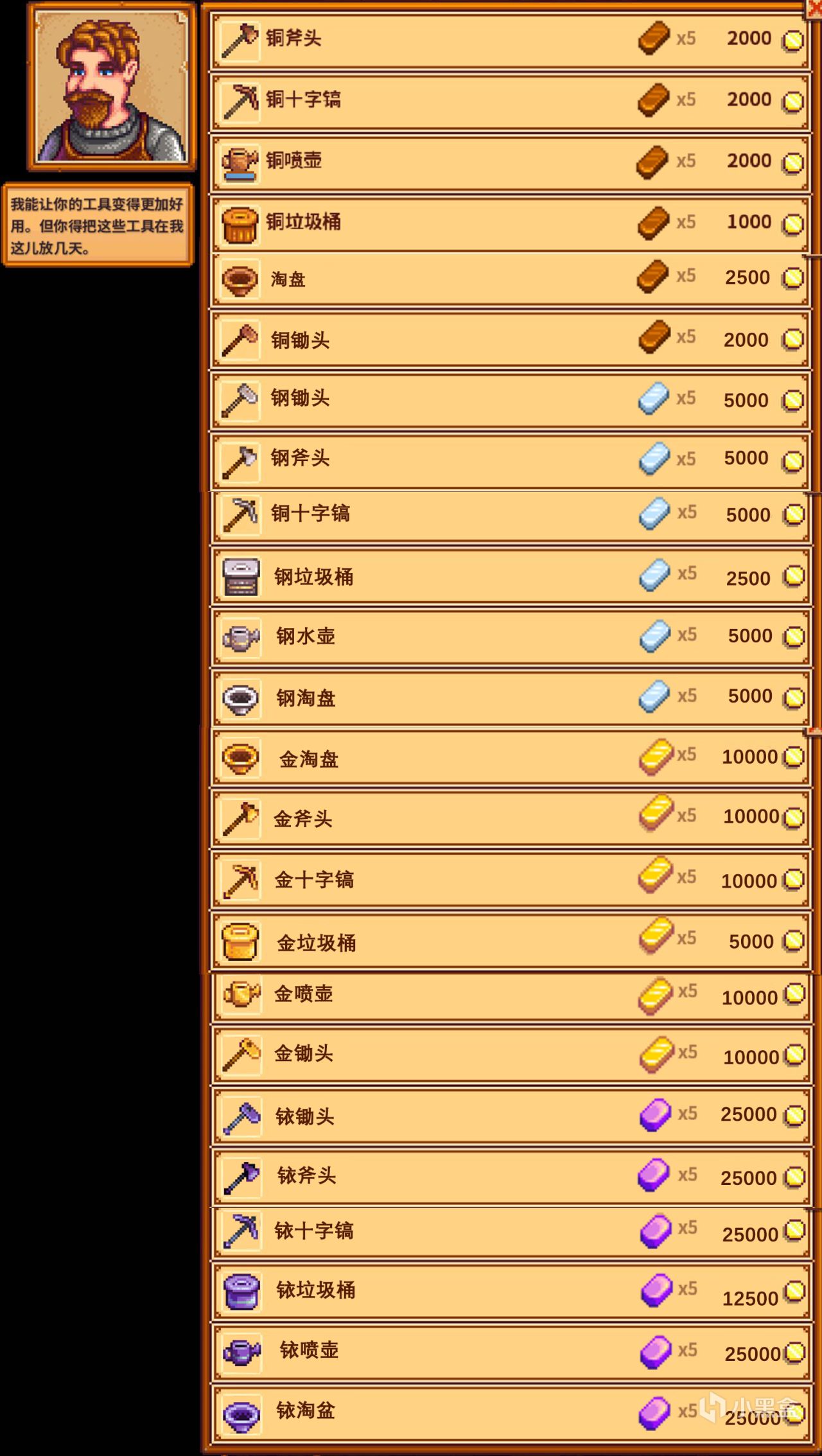木匠和铁匠铺一些商品会在第二年涨价。
