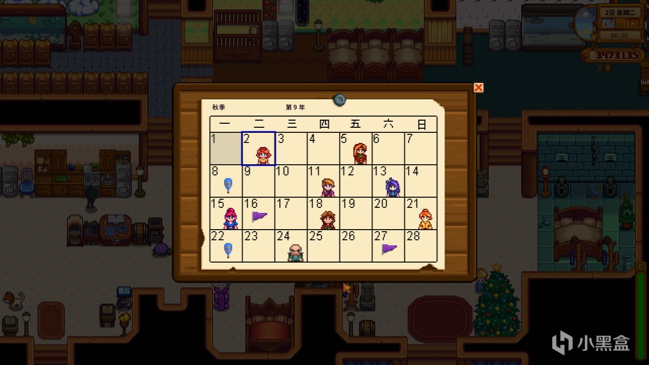 ⑨皮埃尔商店门口有日历可以查看节日和村民生日,在罗宾家也能买日历放在家中查看。