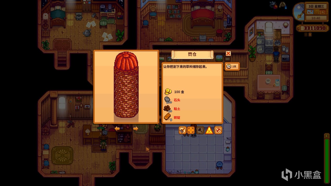 ⑧收割牧草转变成干草需要建造筒仓,有筒仓后用镰刀收割就会掉落干草了。
