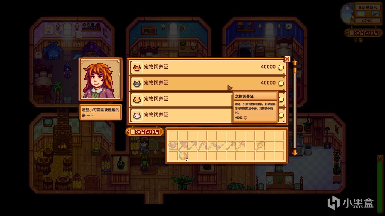 ②玛妮家出售各种动物,在玛妮家购买宠物需要第一只宠物达到最大好感度,或者第二年还没有宠物的情况下才能购买。