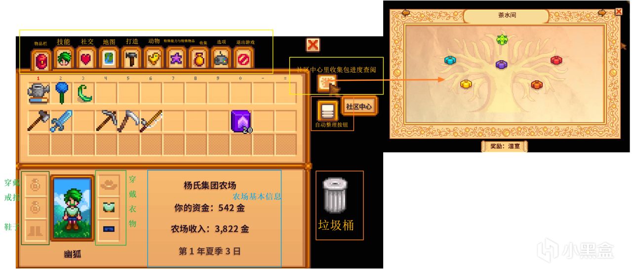 ②在农舍旁边的箱子是出售箱,出售物品。