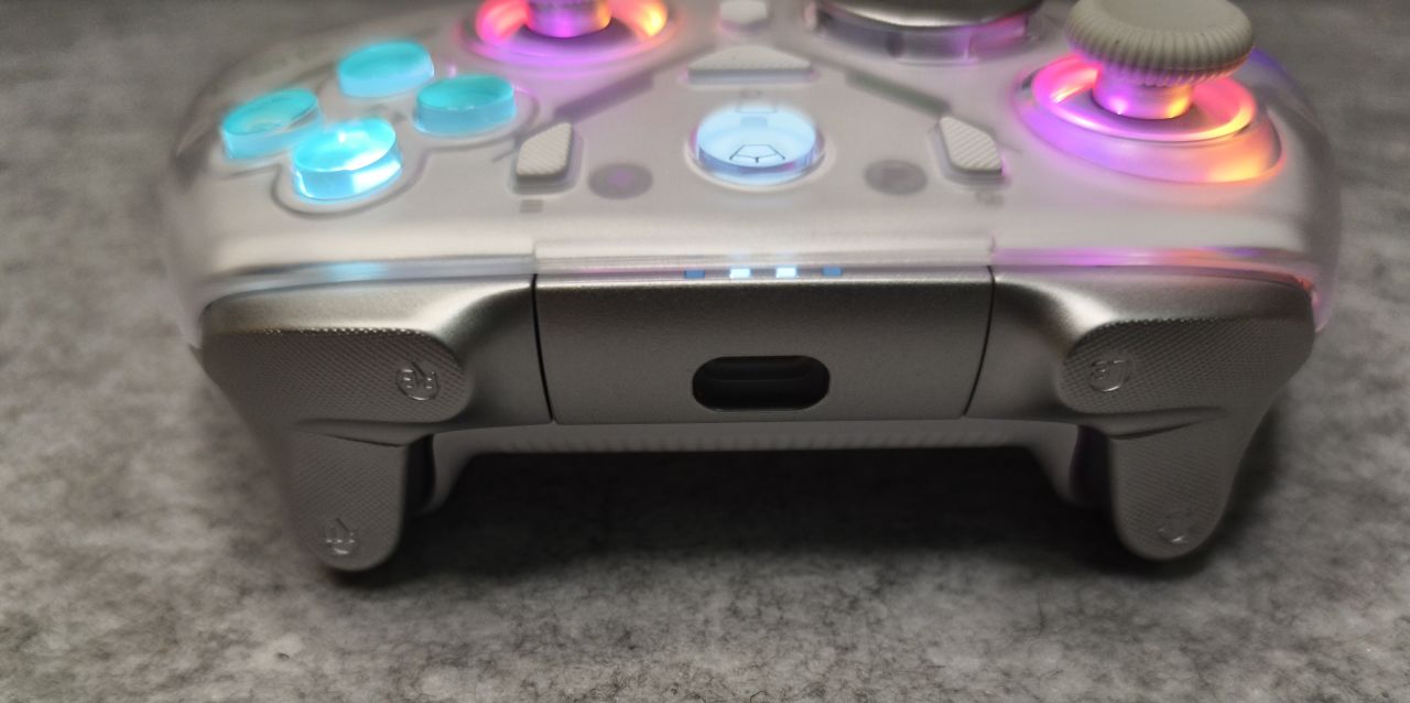 扳机3段式可切换扳机,最长扳机触底与其他手柄类似,缩短行程后扳机按下会有很明确的触底感,没有缓冲,看的出来澳加狮很想做出一款满足学生党的机械手感手柄