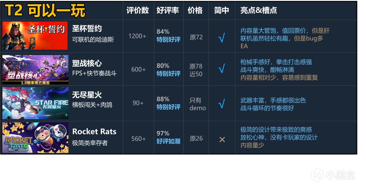 我們會根據主觀體驗和喜好把這些遊戲分成3個檔次。如果有你體驗過的遊戲或是也有想推薦的肉鴿新遊,歡迎大家在評論區友好討論交流!