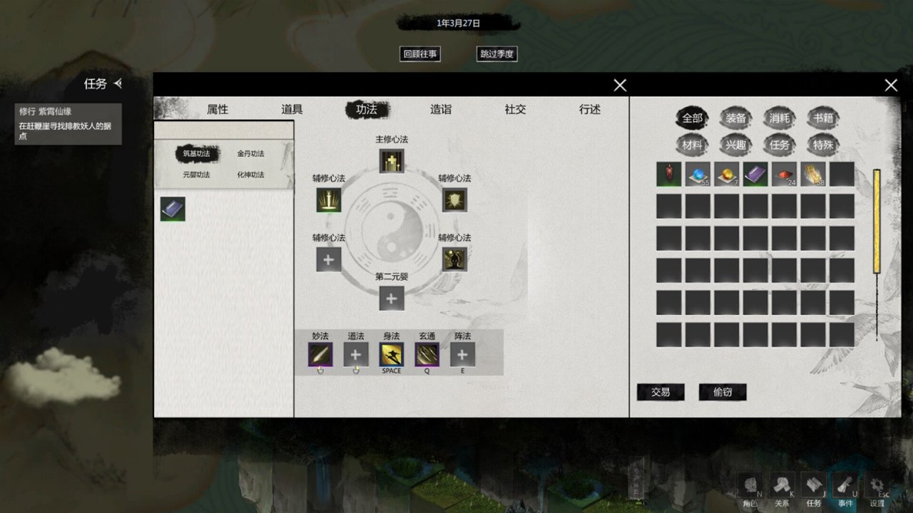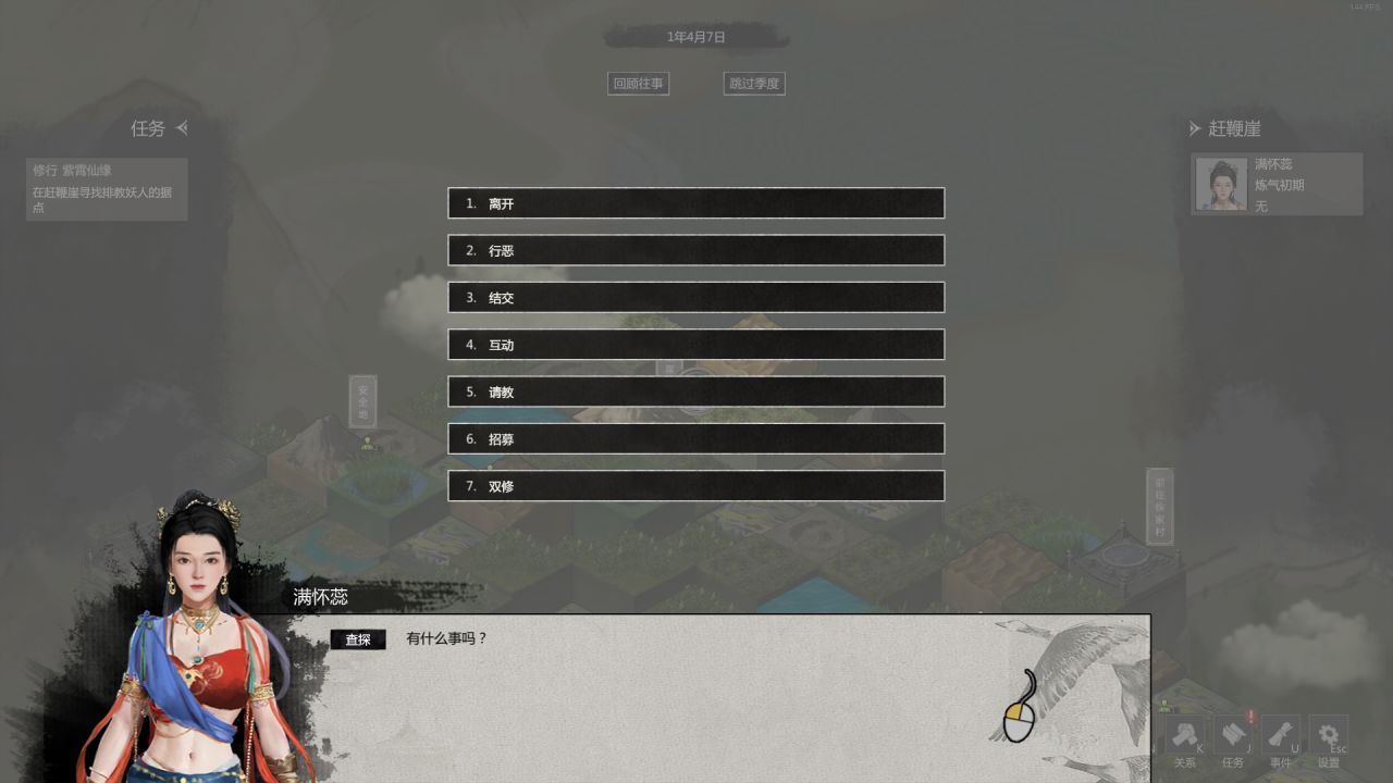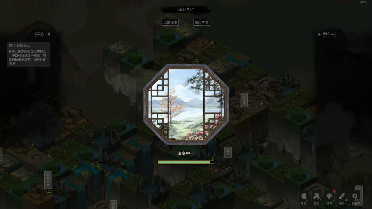 遊戲中,人物每走一步,時間就會過去一天,而且人物每走一步時間都增加一天,每個季度都會演變一次。個人認爲這是最大的敗筆!走兩步,演變一次,修行一次(拉滿),演變一次,做個任務演變兩三次!!!