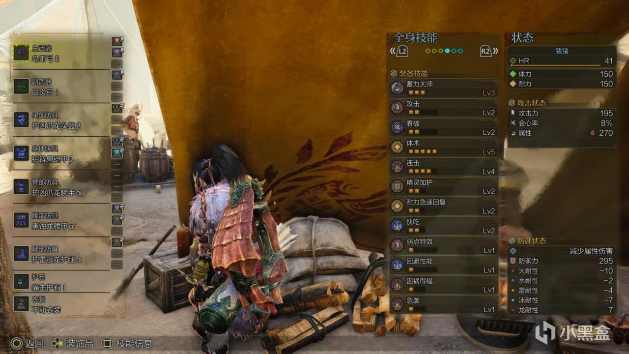 hr20主線過後又可以遇到護兇爪,把身上的下位直接換成上位。其餘部件可選的很多,我選擇的是雷顎兩件,有耐力回覆。我個人沒有升級武器,r5r6看着都差不多。如果打起來覺得喫力可以考慮升級一下武器。我這套刮凍峯龍颳了20多分鐘,着實有些喫力。20-40級升級是比較慢的,儘量先做裝備,然後打自由任務。出現了主線任務先做主線。一般來說做完裝備等級是不夠的,推薦打一打雪獅子。