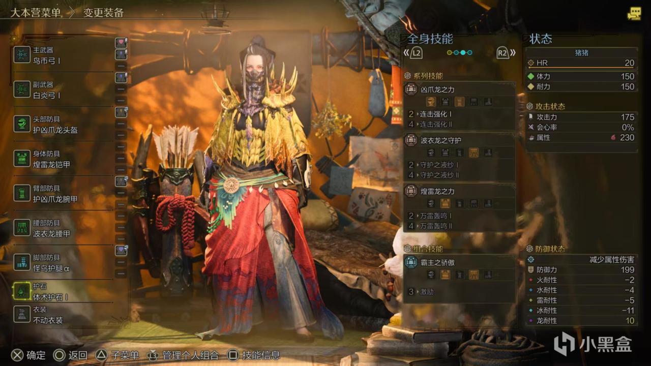 打完煌雷龍之後,可以製作煌雷龍的胸,擁有一級體術,是第一件有用的防具。打一隻的素材應該足夠做了。煌雷龍的武器也一把更好的貫通弓,想刷一下可以多打幾隻,做出武器。之後的風鋏龍的武器是不錯的強擊瓶武器,幾件防具有迴避性能,可以看情況做。護石可以製作以後,做體力回覆或者精靈加護都可以。到這個階段貫通弓的威力就還不錯了,打一些不太好打到弱點的怪可以用貫通。這時怪物的攻擊力有所提升,製作的防具可以用鎧玉升級。鎧玉送的非常多,且有一些額外系統可以提升防具的防禦力,大家自行利用、