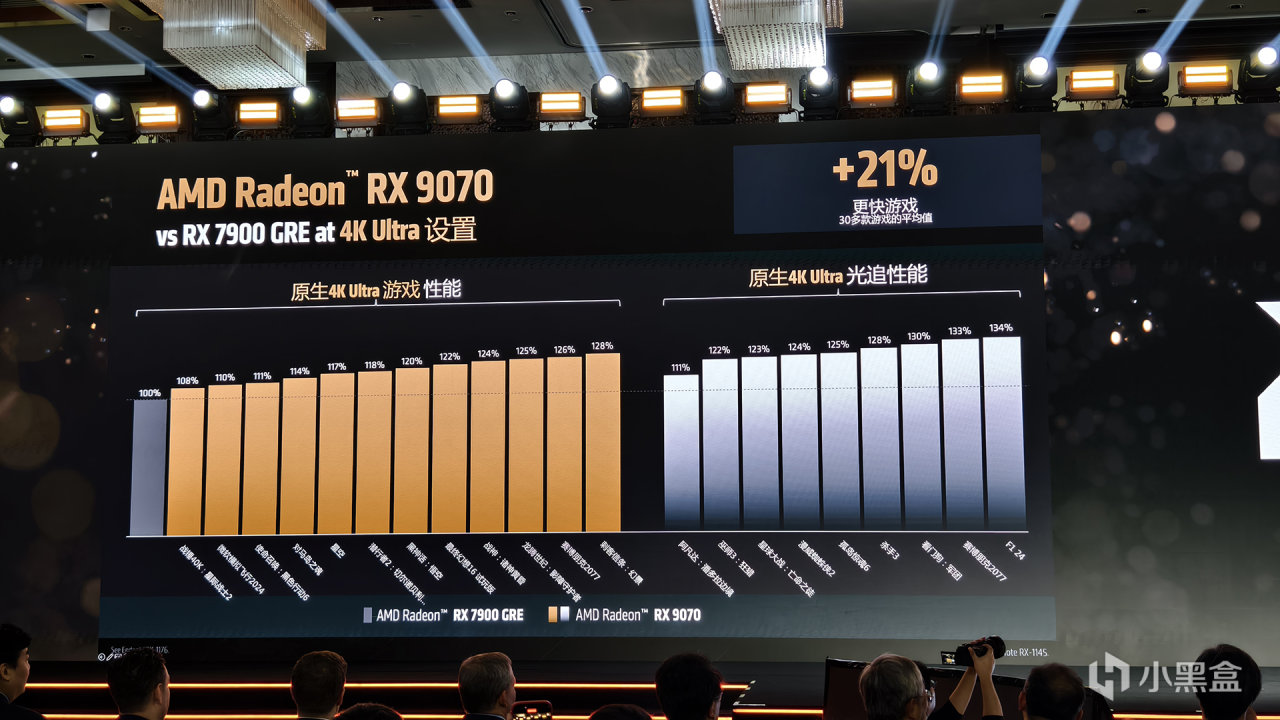 RX 9070对比RX 7900 GRE在4K游戏综合提升幅度达到了21%,最大领先幅度达到34%,包括传统光栅和光追性能,王岚志还特别强调我们展示的是原生分辨率非软件或者技术加成,踏实给玩家带来性能升级体验。