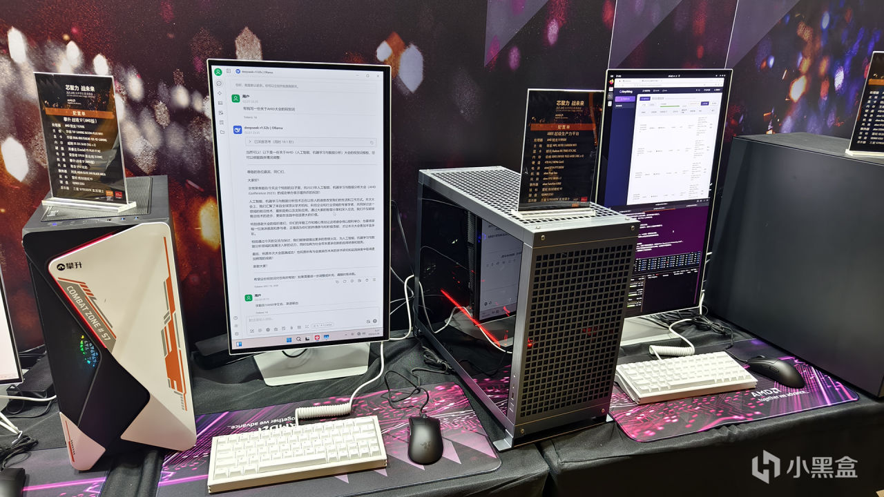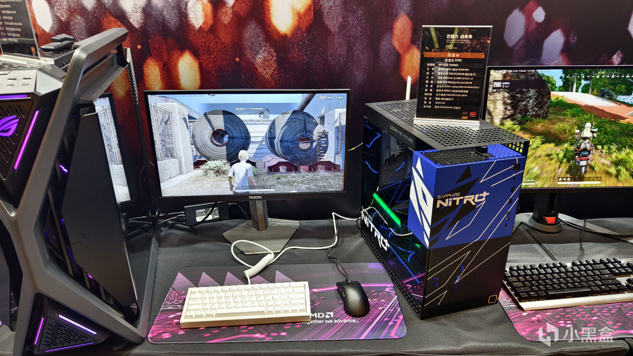 离开新品展示区后,会场还摆放着不少AMD信仰主机,比如以上这台具备蓝宝石信仰力的机器,搭载了锐龙7 9800X3D+蓝宝石NiTRO+氮动 B850M WIFI+蓝宝石 RX 7900 XTX 24GB 超白金OC,正在运行绝地求生游戏,这款游戏可是X3D强项,因为它具备大缓存几乎不怎么需要吃内存性能,而吃鸡偏偏又是吃内存性能的,配合旗舰A卡能跑到极高的帧率。