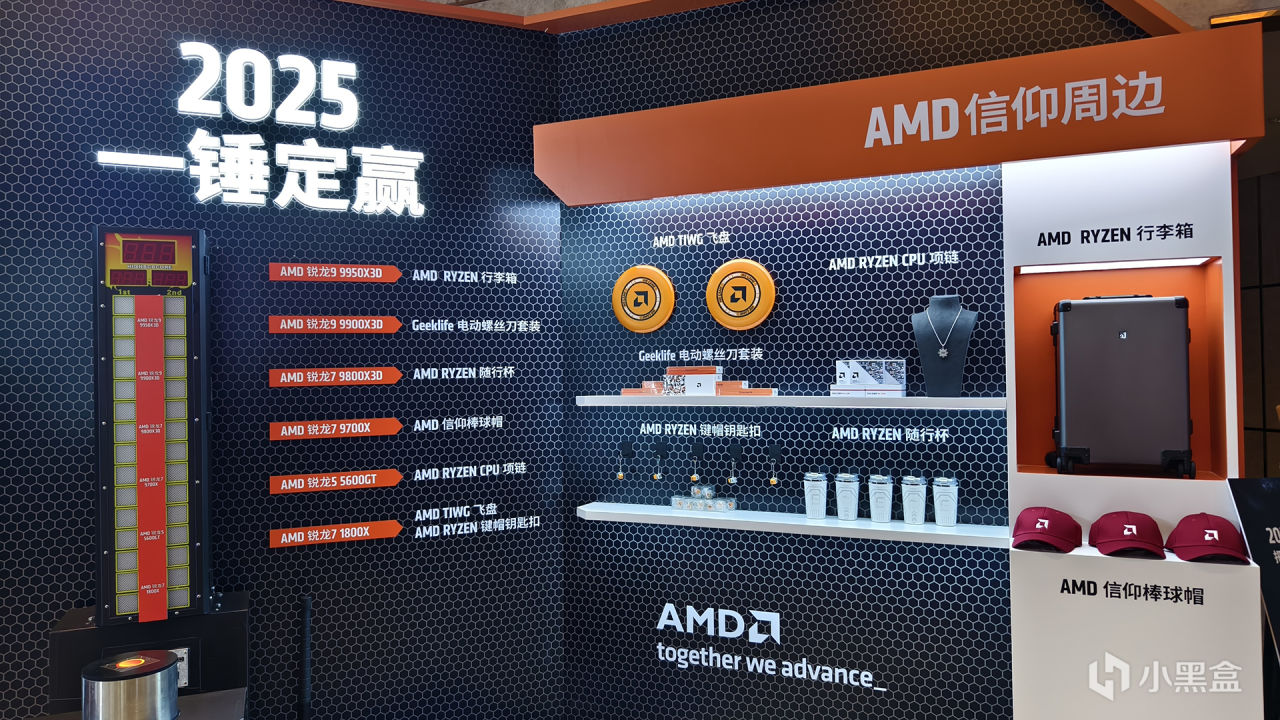 会议结束后,硬核马不停蹄赶去DEMO展区逛逛,首先吸引到本人的是一锤定赢的活动呢,也就是让参与者用锤子敲打这个感应器看能达到多少磅力度,力度越大奖品也就越丰富,大多数玩家用尽力都可以拿到电动螺丝刀套装,算是AMD给咱们的小福利~