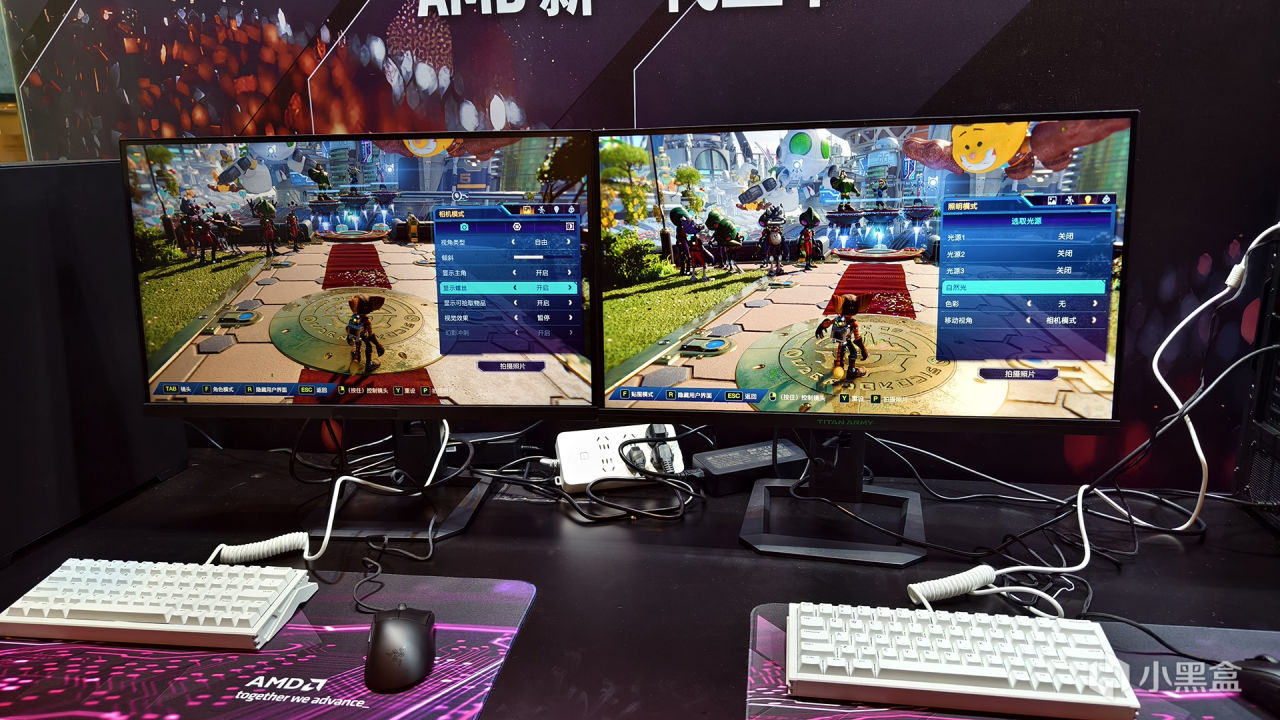 在DEMO区最里面的位置人头涌涌,原来这里展示的新品是新的锐龙9950X3D处理器和RX 9070系列显卡,机器都已经搭建好了可以抢先试玩,硬核足足挤了几分钟才上手,演示的正是支持FSR 4技术的瑞奇与叮当:时空跳转这款游戏。