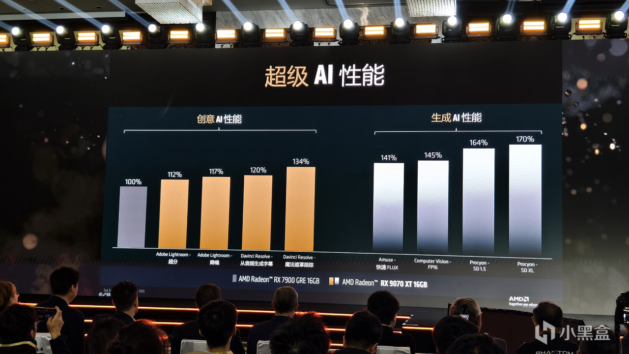 如今高端显卡也离不开AI性能,在RX 9070 XT创意和生成类项目中,相比RX 7900 GRE,它最大提升幅度可达到70%,提升甚至要比游戏还要更夸张,当然这是基于Procyon-SD XL环境下的,最小提升幅度也有12%,为创作者常用的Lightroom修图软件。