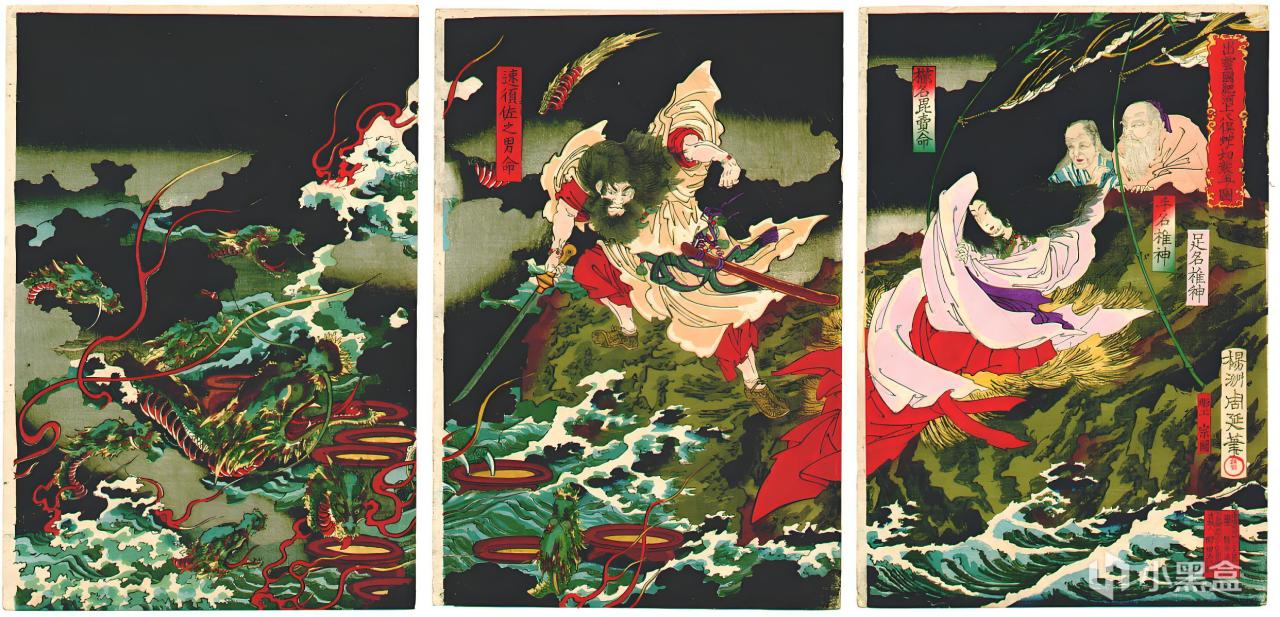 八岐大蛇,就如同其名字一樣,頭與尾分裂爲八個,背上生長着松樹與檜樹,身軀橫跨了八座山谷以及山峯,是隻難以想象的大怪物,每年都要喫人當祭品,須佐之男聽說後決心消滅它。