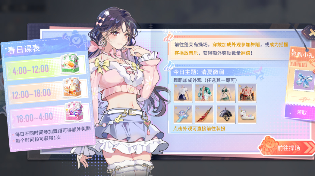 穿上特定外觀到蓬萊島跳廣播操,更有幾率開出春日極品時裝!