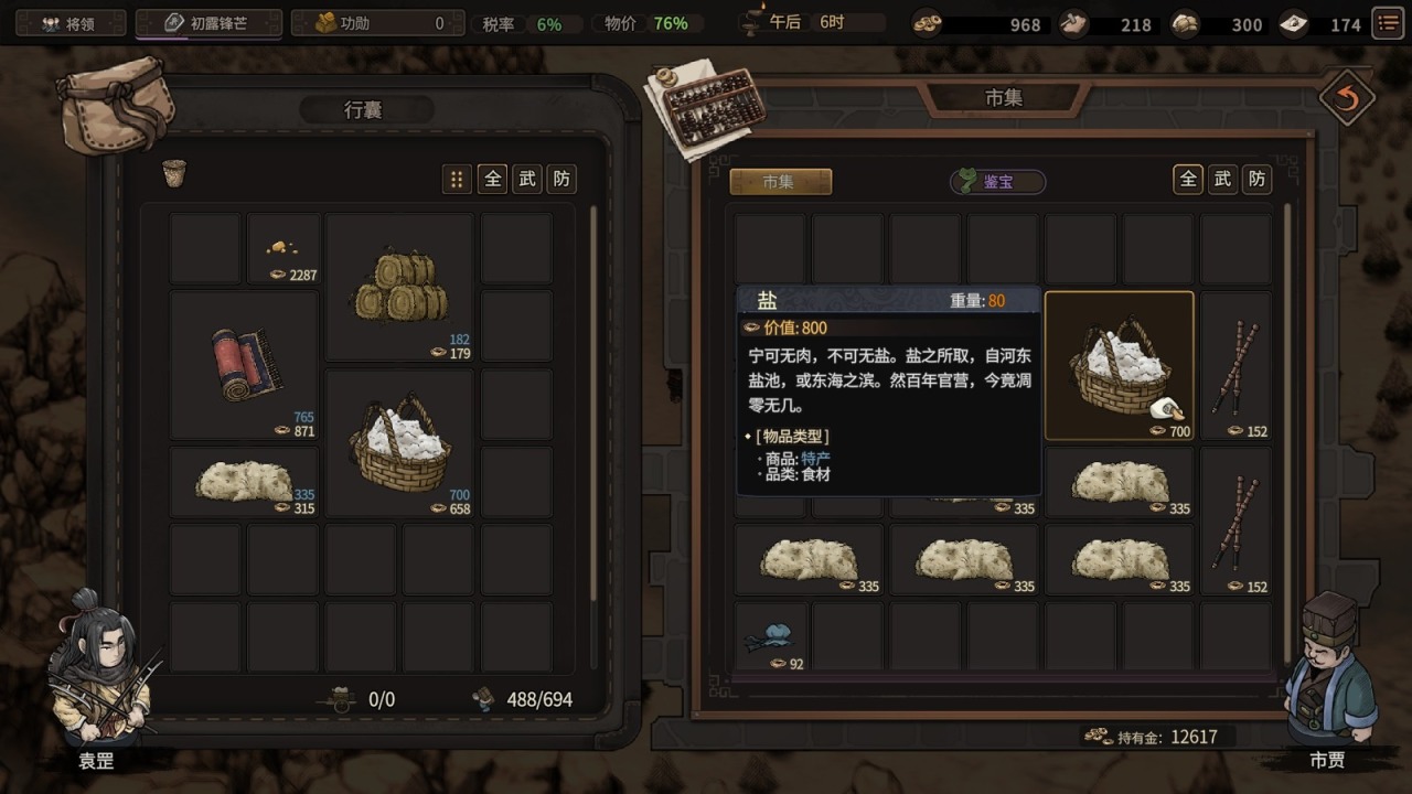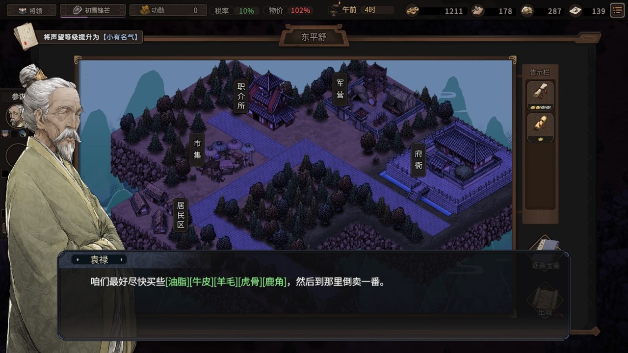 接单子押镖护送或者“滴滴打人”只需要我们主角和武将能打就行了,但是这个跑商就很有技术含量了。我们在声望等级达到二级之后可以将家仆老叔聘请为顾问,这个老叔就是商业方面的专家,会给我们经商方面的建议,其实就是明示我们该去买什么商品,运到哪里去卖。当然这个也是有一定讲究的,你首先时间得赶趟儿,其次商品要买对。而且大多数时候还是要靠我们自己根据各地的物价指数来自行决策。