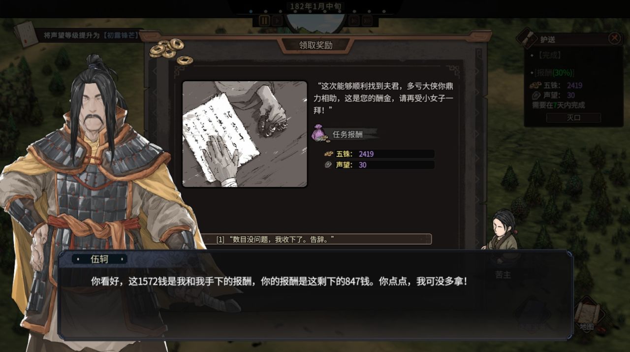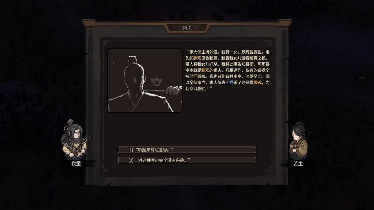 最开始的单子,有押镖、护送等类型,这个很容易理解,我就不啰嗦了。比较有意思的是有一类任务,简单粗暴,我愿称之为“滴滴打人”——会有苦主要你去某个地方帮他去打某个冤家仇人(有时候甚至是直接将仇人嘎掉),你完事之后找苦主拿报酬就行了。