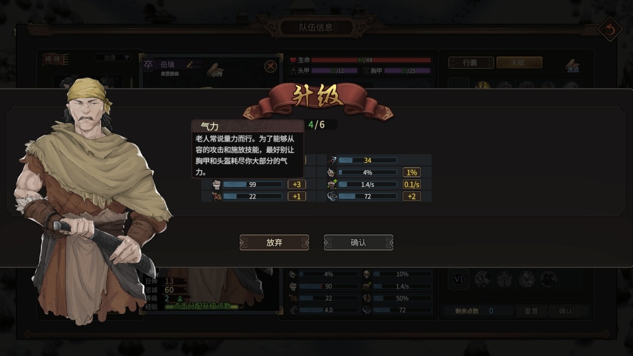 首先是《猛将三国》这个游戏的玩法,自由度非常高。进游戏之后选主角,DEMO只能选袁罡(正式版肯定不止这一个),选了主角之后有一个随机ROLL属性值的功能。我一看这游戏的主角有八个维度的属性就知道这游戏不一般,多达八个属性维度就意味着角色成长的路线会非常多样化,至少养成系统肯定是量大管饱了。