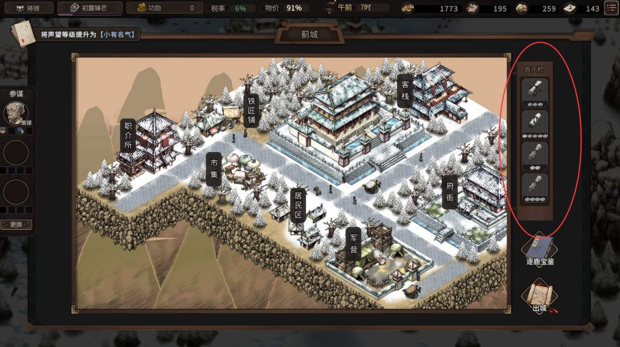 总之前期在布告栏多多接活儿,积累金钱和声望是基础。可能前期会有种接单子干活儿的打工感,但这是我们不断滚雪球积累势力从而在三国乱世立足的必要过程。刘备贵为皇叔,不一样得从卖草鞋开始创业吗?所以咱从“滴滴打人”开始干起,这很合理。
