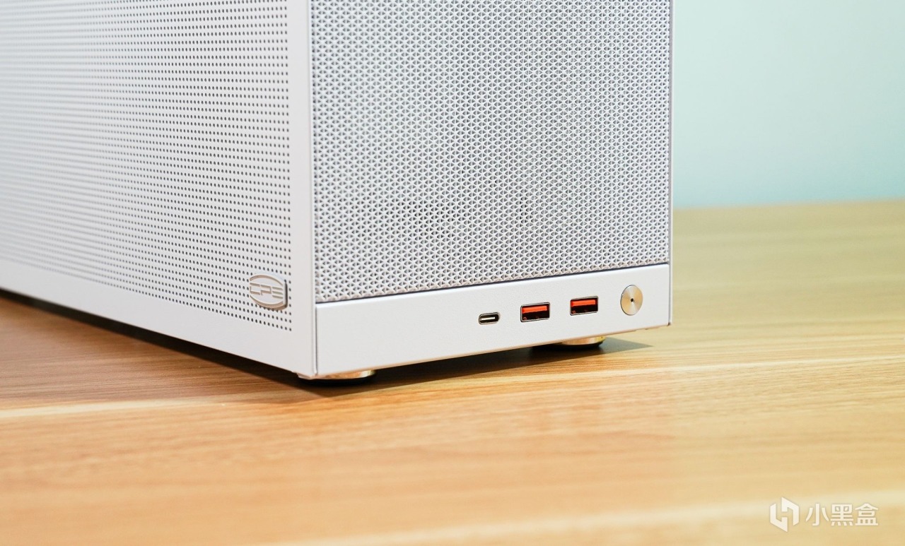 機箱前面有一個開關按鈕,2個USB-A接口和一個USB-C接口。