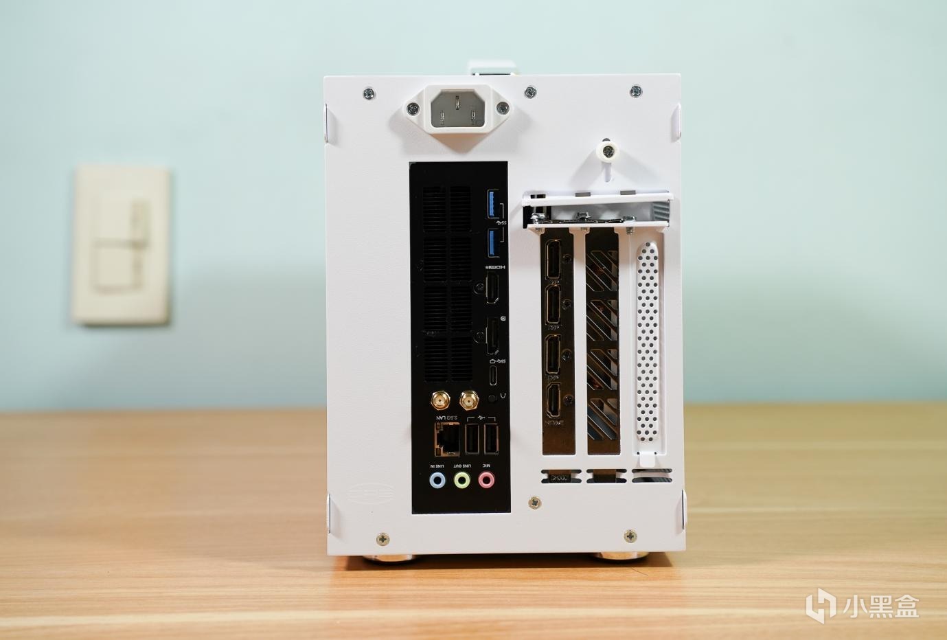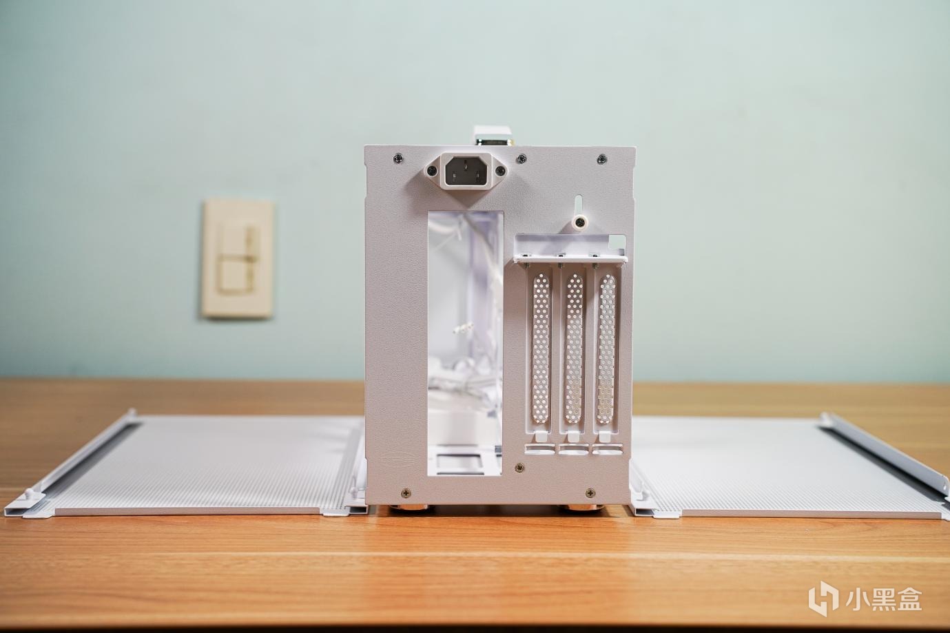 側板是卡扣式快拆快裝的,所以可以輕鬆取下。從背部可以看出有3個PCIE槽,後面是一個電源線接口。空的是主板IO接口位置。
