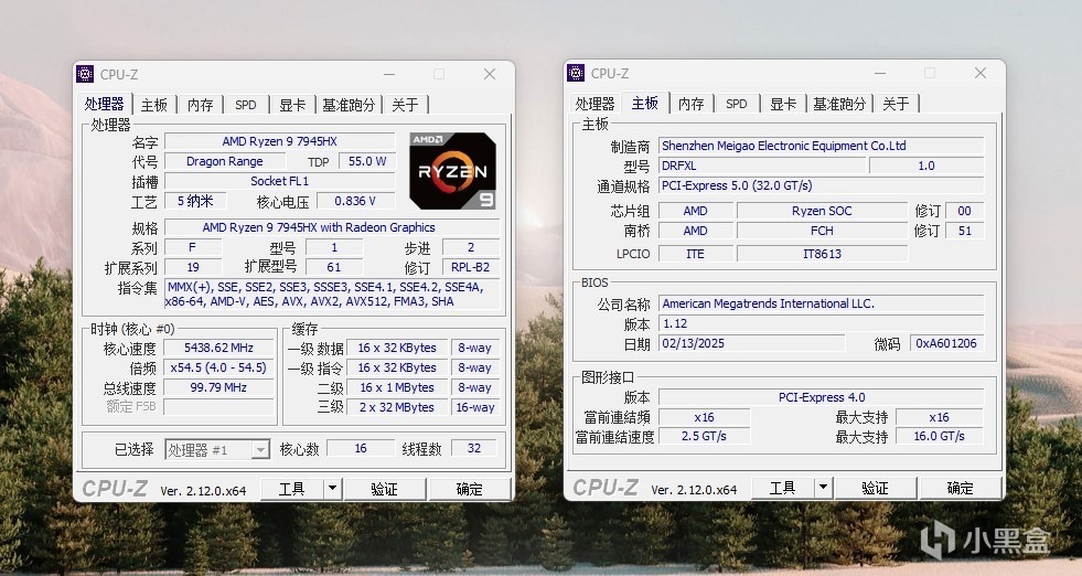 CPU-Z,CPU AMD R9 7945HX,TDP 55W,三級64MB大緩存就是爽啊。