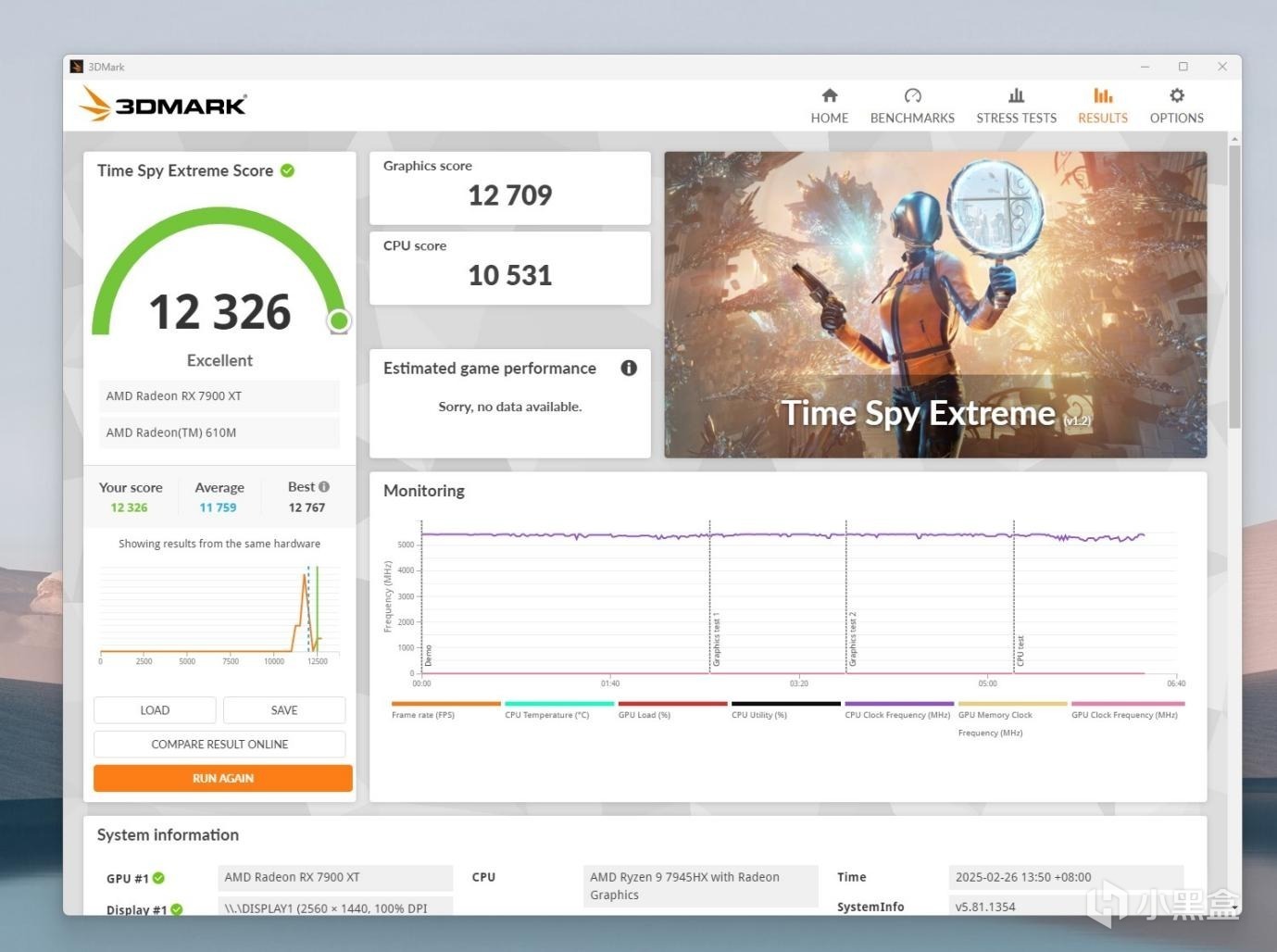 3DMARK Time Spy Extreme,總分12326,其中CPU分數10531,圖形分數12709。